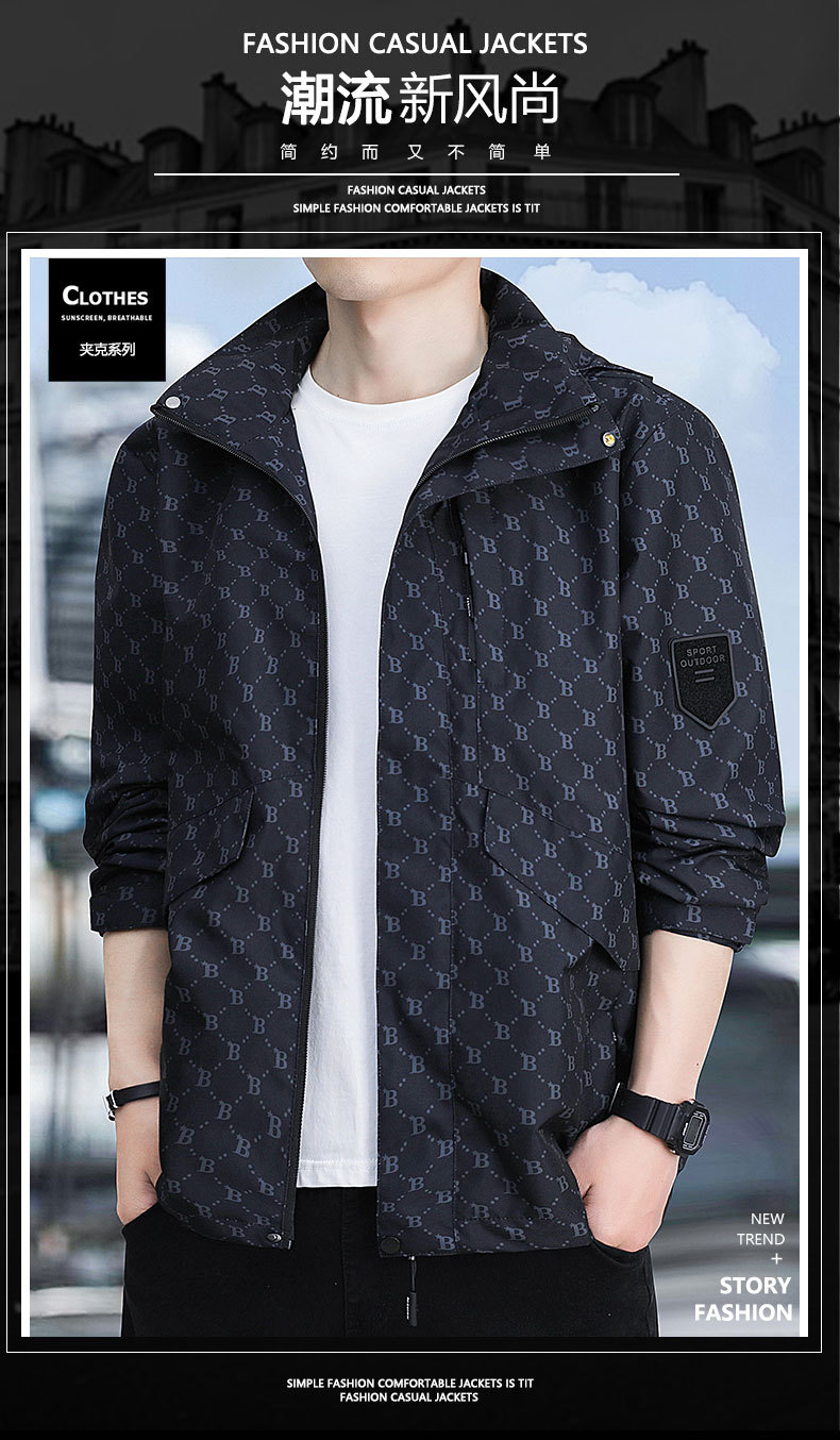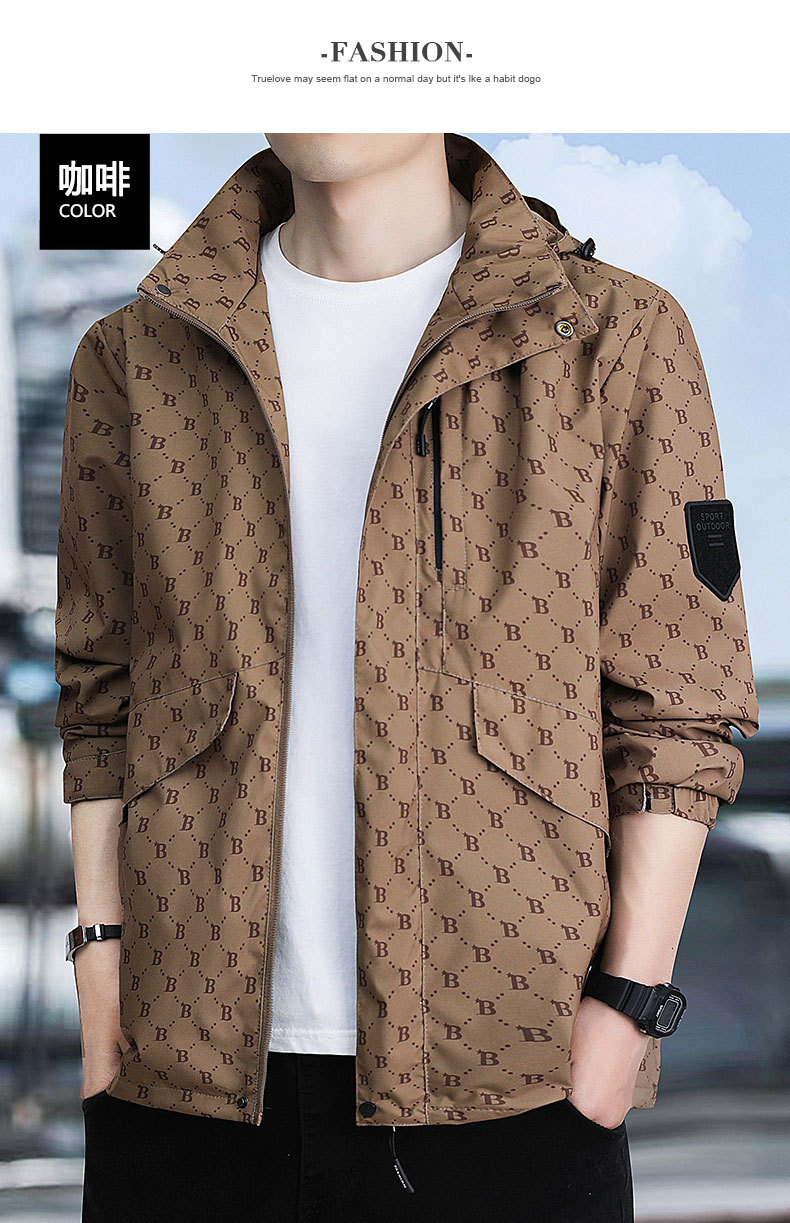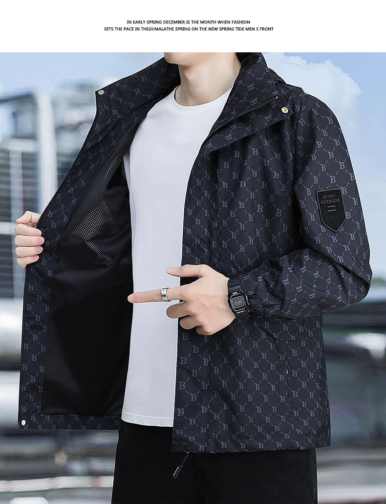 재킷 남자의 봄과 가을 새로운 유행 B-편지 후드 방풍 방수 재킷 야외 유행 올 매치 재킷