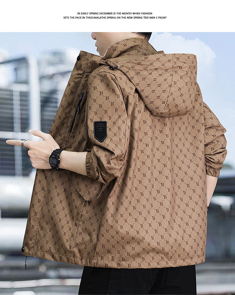 재킷 남자의 봄과 가을 새로운 유행 B-편지 후드 방풍 방수 재킷 야외 유행 올 매치 재킷스토어 가기