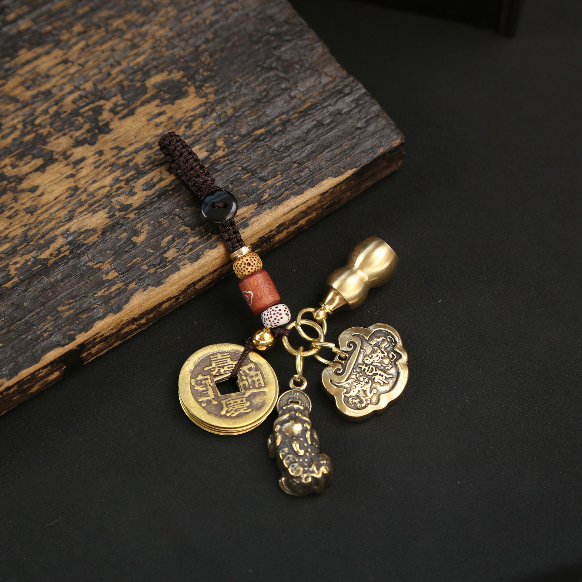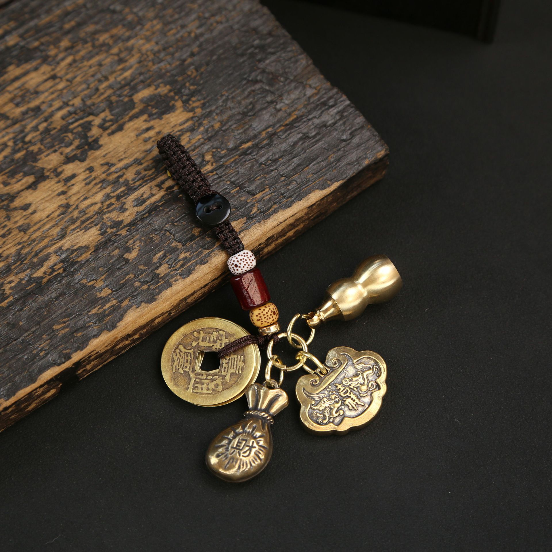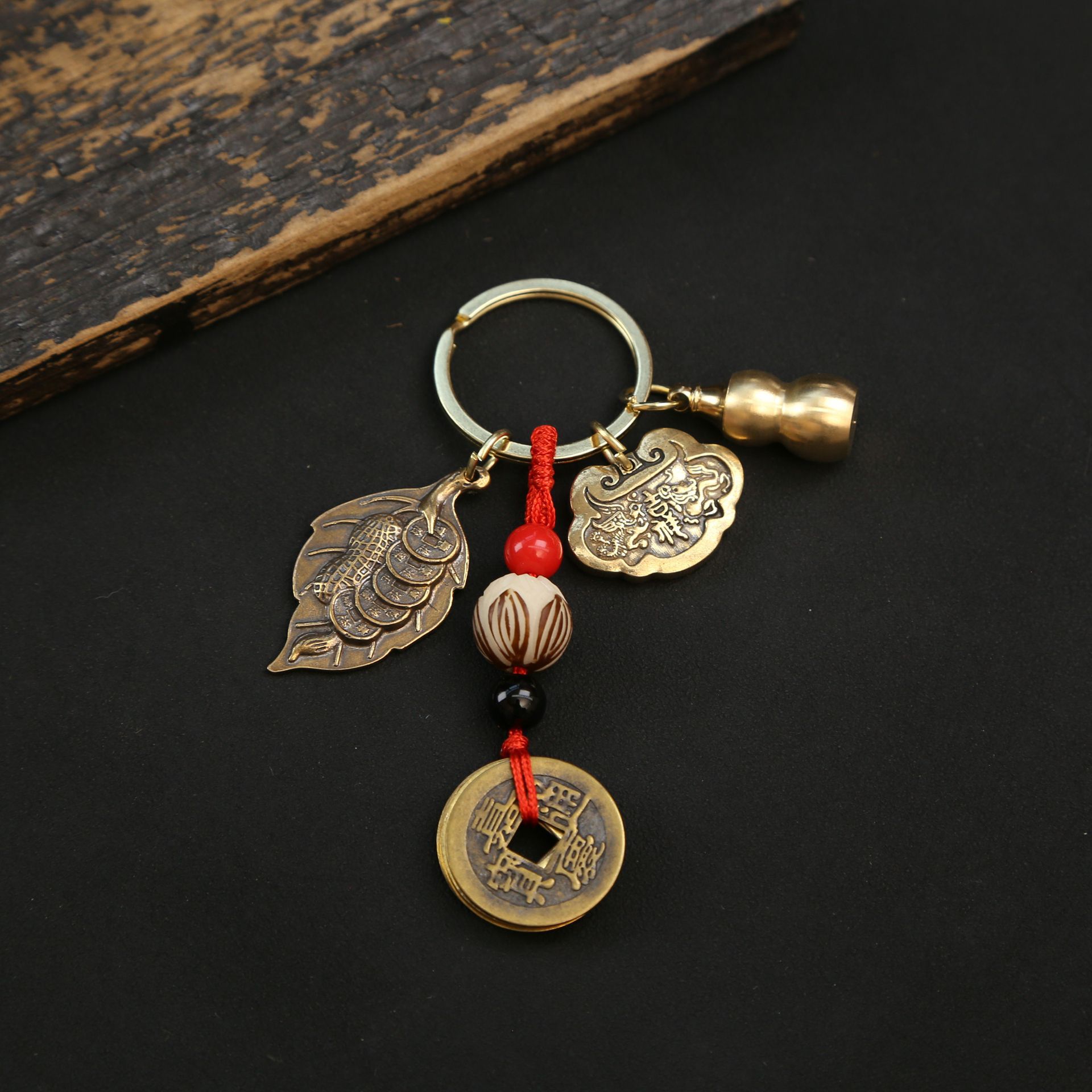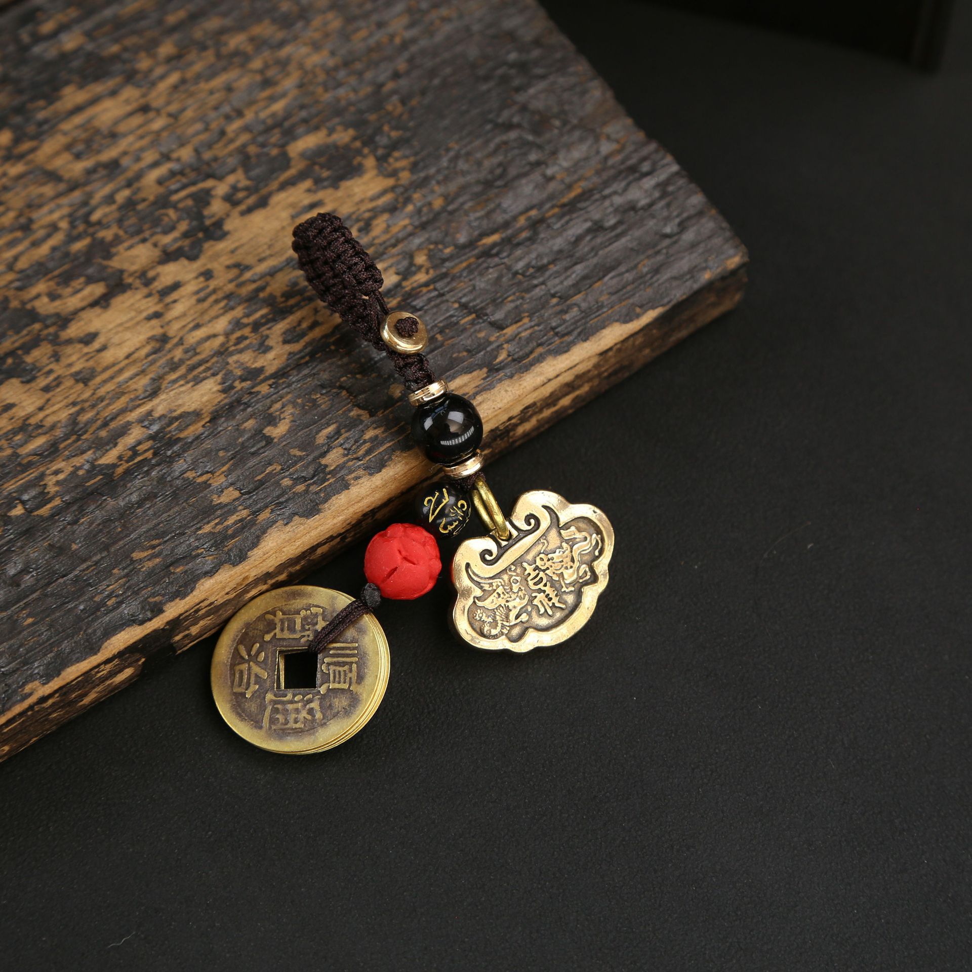 황동 Longfeng Ruyi 잠금 자동차 키 체인 펜던트 드레스 다섯 황제 돈 훌루 남자와 여자의 가방 펜던트 중국 스타일
