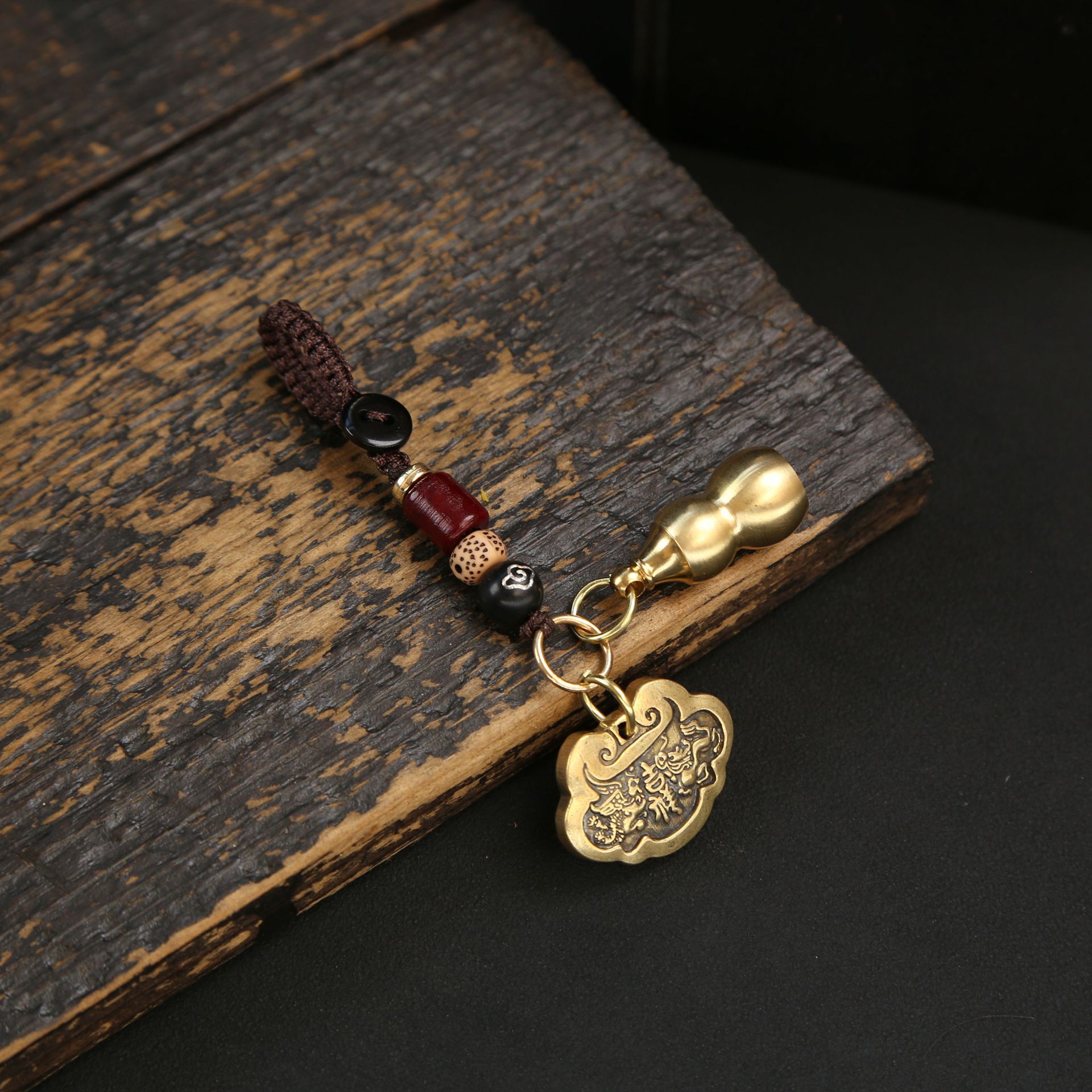황동 Longfeng Ruyi 잠금 자동차 키 체인 펜던트 드레스 다섯 황제 돈 훌루 남자와 여자의 가방 펜던트 중국 스타일스토어 가기