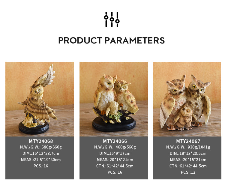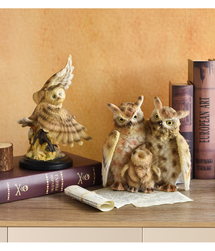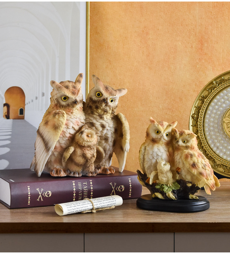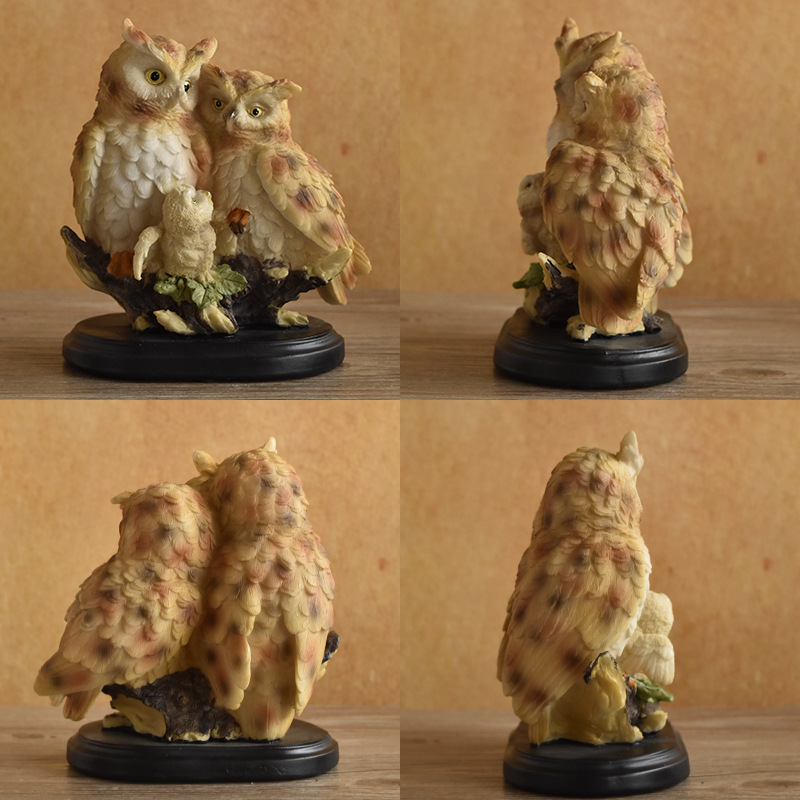 국경 간 폭발 올빼미 가족 세 수지 공예품 책상 TV 캐비닛 커피 테이블 장식 선물스토어 가기