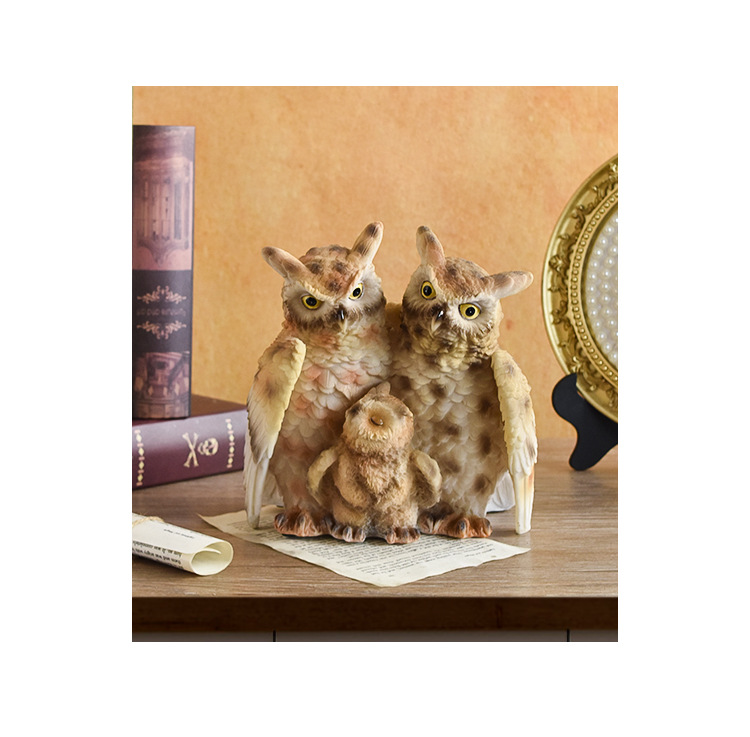 국경 간 폭발 올빼미 가족 세 수지 공예품 책상 TV 캐비닛 커피 테이블 장식 선물