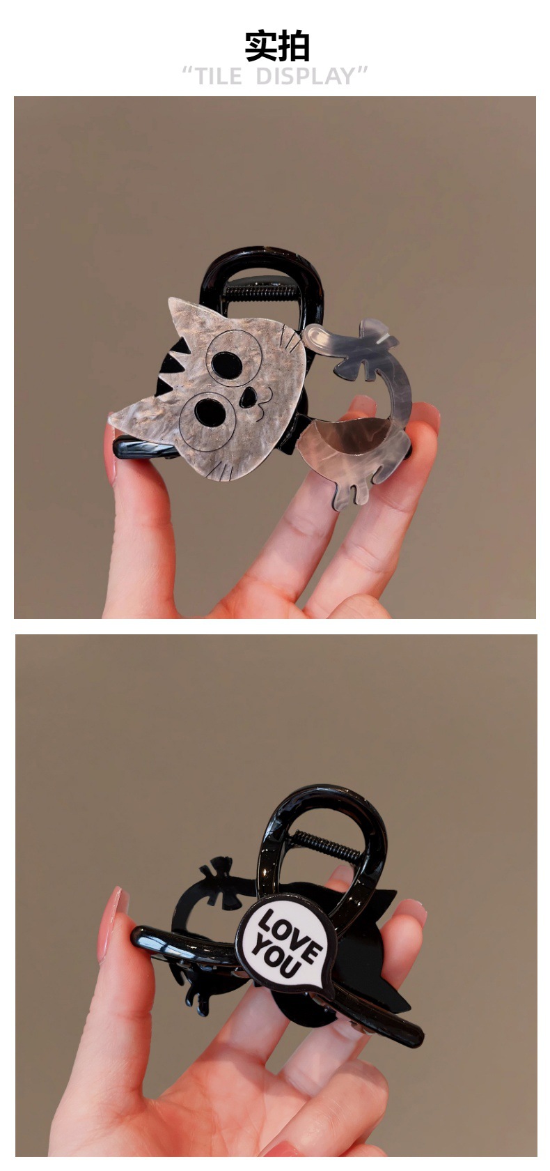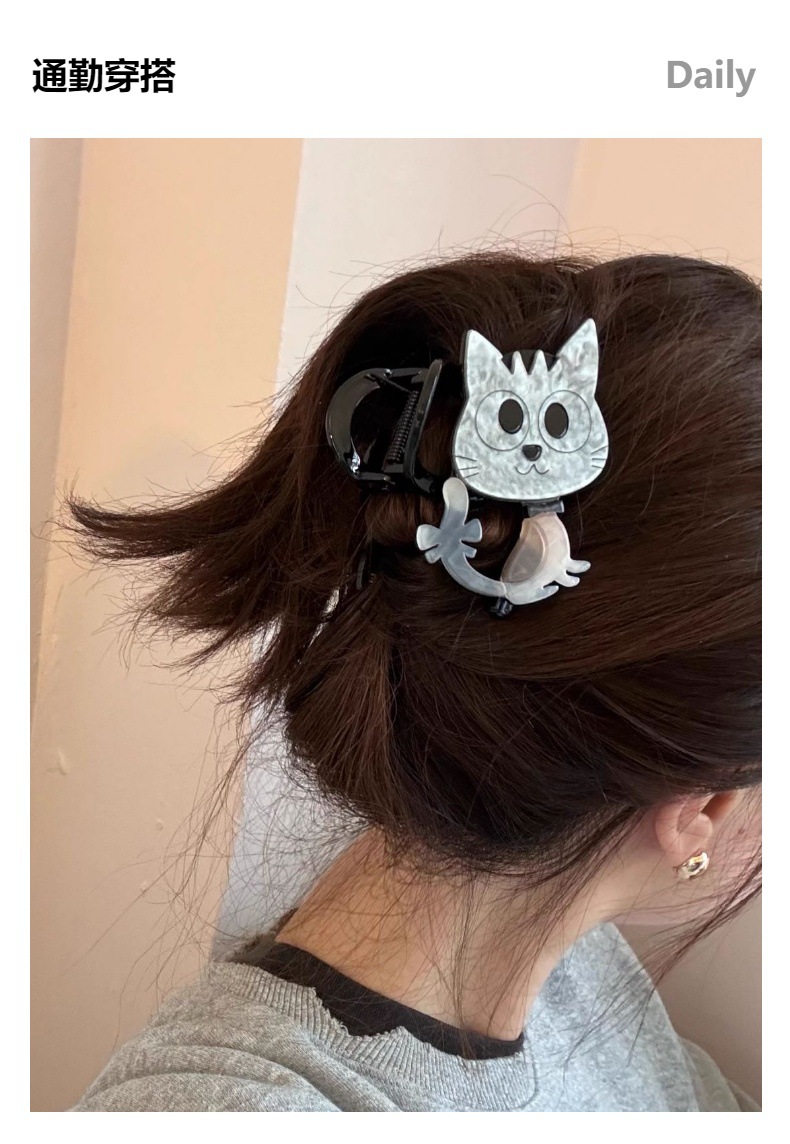 2024 새로운 AB-얼굴 새끼 고양이 그립 클립 여성의 하이 엔드 상어 클립 머리핀 헤어 클립 백 헤드 플레이트 헤어 헤드웨어 클립스토어 가기