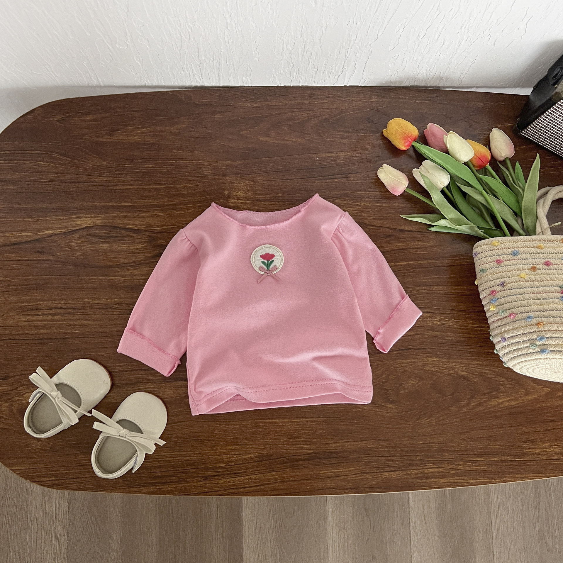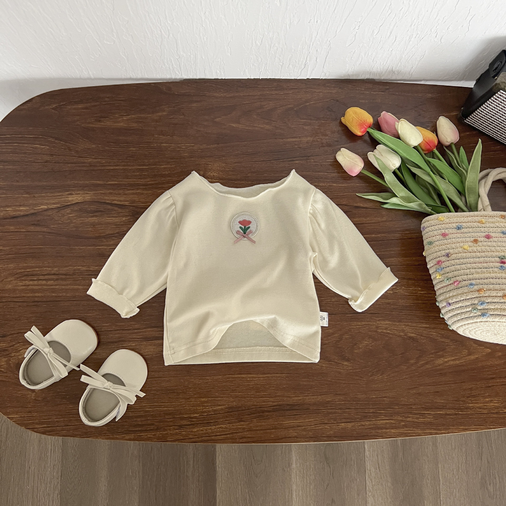 소녀베이스 셔츠 외부 착용 긴팔 티셔츠 어린이 여성 내복 가을 옷 아기의 흰색 둥근 목 올 매치 탑 봄