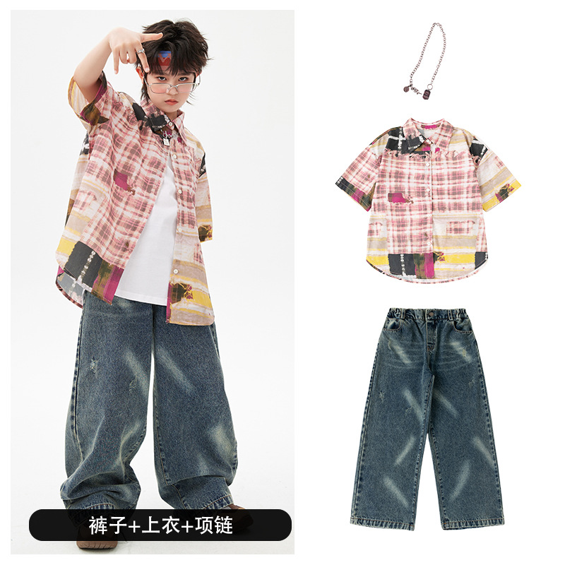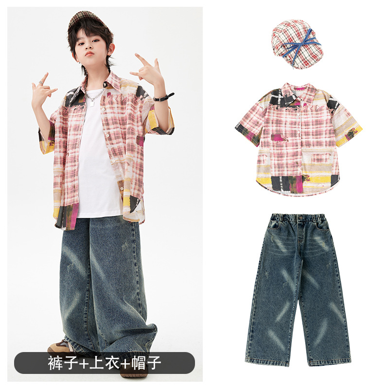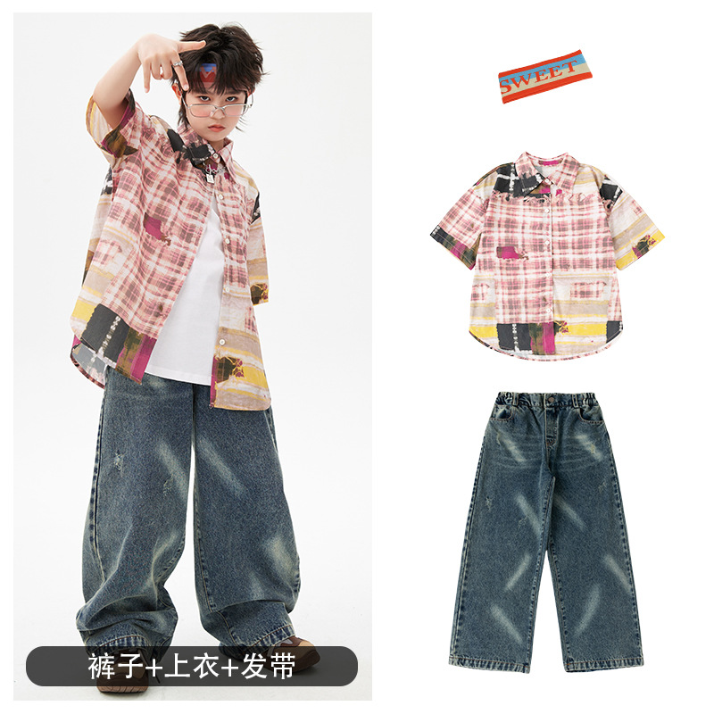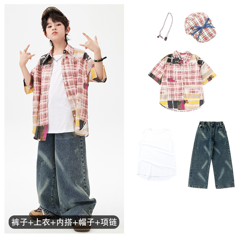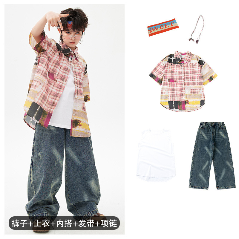 어린이 힙합 패션 의류 공연 의류 힙합 셔츠 소년 잘 세트 Hiphop Girls 의류 패션 브랜드 아동복
