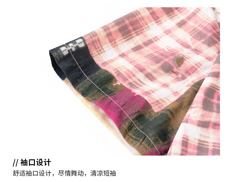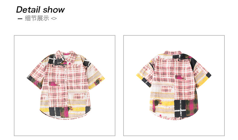 • 7096 빨간색 체크 무늬 셔츠 + 흰색 민소매 조끼 + 7115 파란색 데님 바지 + 빨간색 체크 무늬 포워드 모자 + 목걸이
