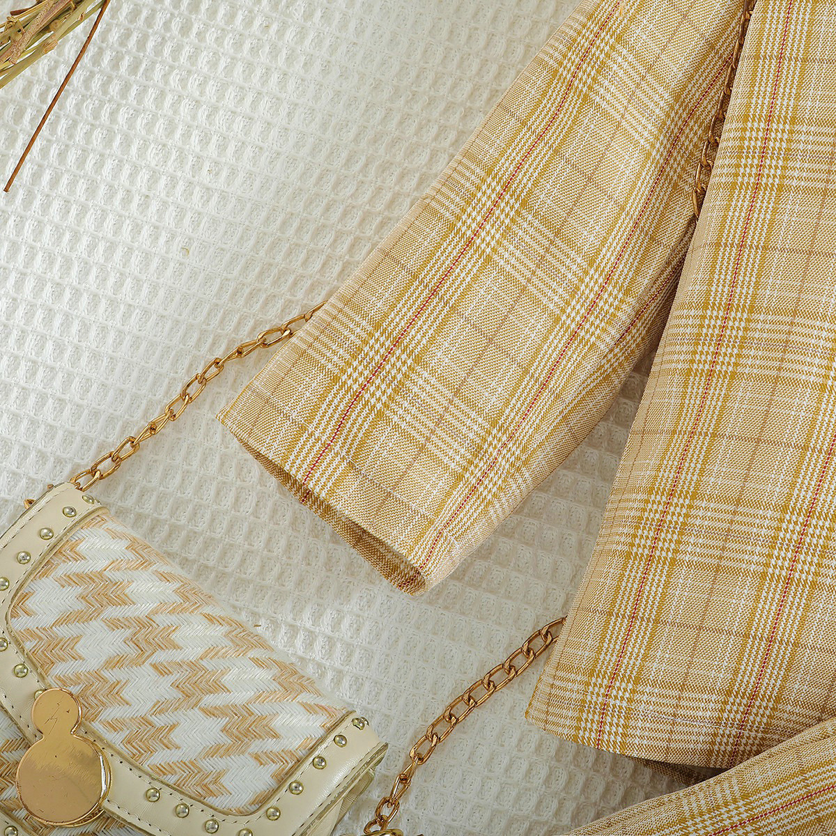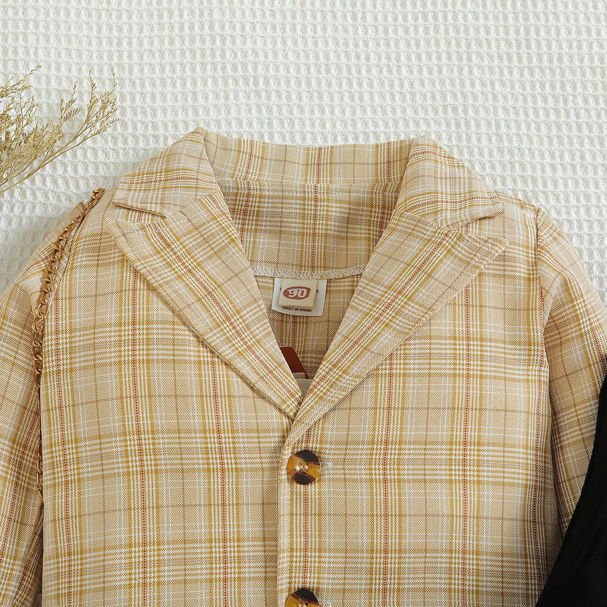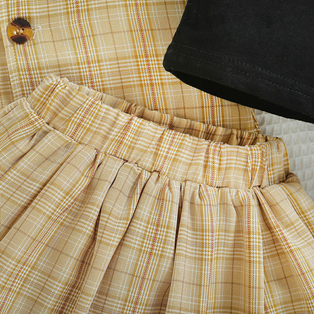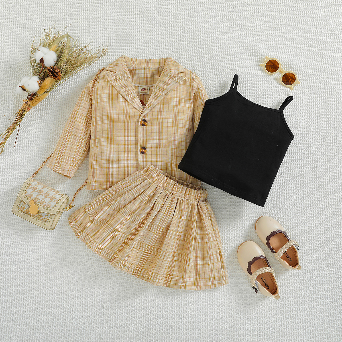국경 간 아동복 소녀 세트 가을 새로운 아기 격자 무늬 세트 재킷 슬링 스커트 어린이 3 종 세트