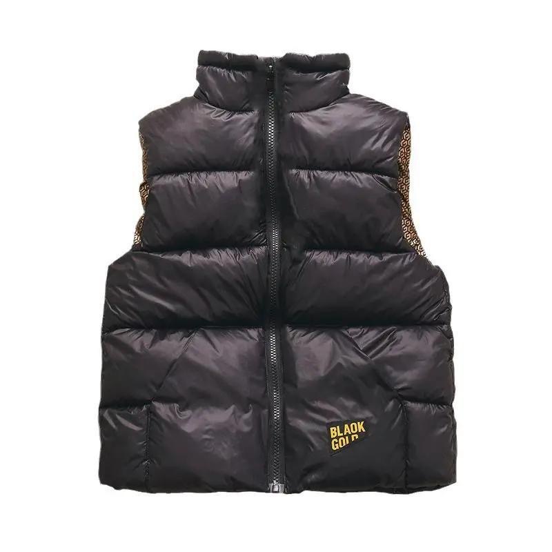 어린이용 블랙 골드 다운 코튼 조끼 2024 남아 여아 중대형 어린이용 두꺼운 보온 코튼 조끼