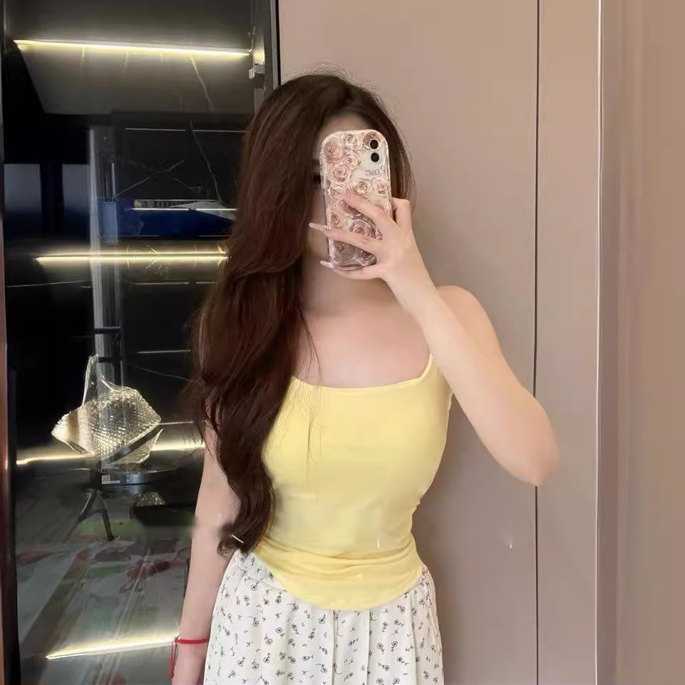 한국 사회 올 매치 얇은 어깨 스트랩 카미솔 여성 벨트 가슴 패드 내부 여름 얇은 보텀 아우터 착용 여성용 민소매 탑스토어 가기