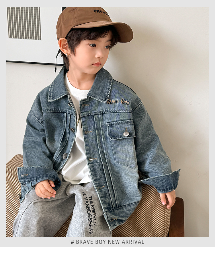 남아 트렌디 워싱 데님 재킷, 패셔너블한 한국 스타일 아동 재킷, 2025 봄 가을 신상품, Haimajia 아동복스토어 가기