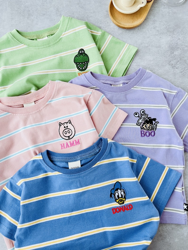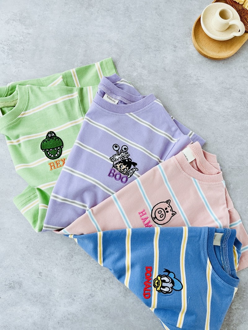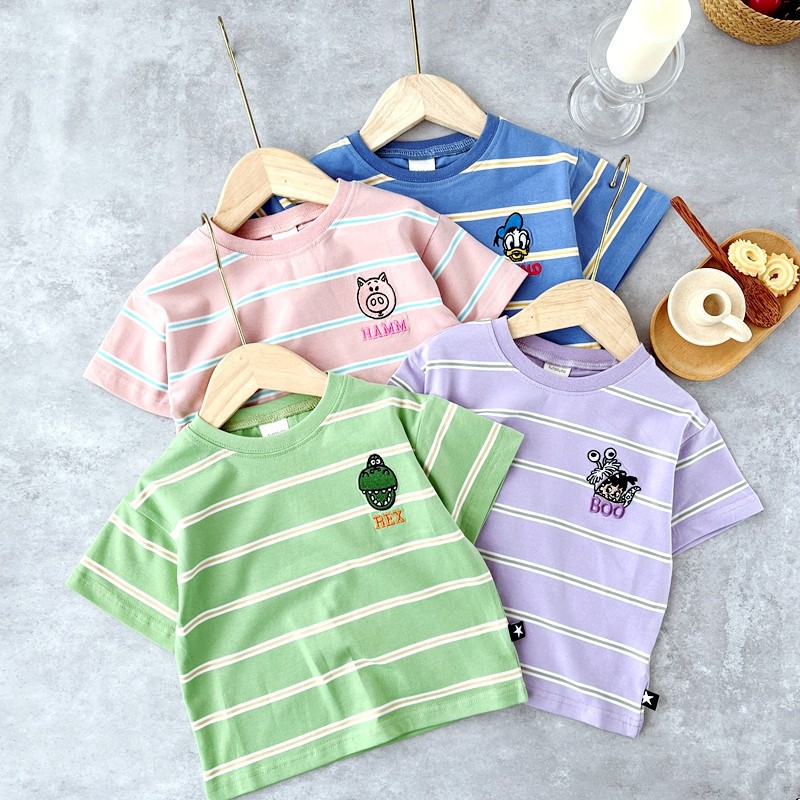 일본 오리지널 싱글 반팔 티셔츠 여름 코트 스트라이프 만화 futa 아동복 조수 어린이 대외 무역 도매스토어 가기