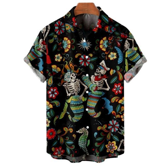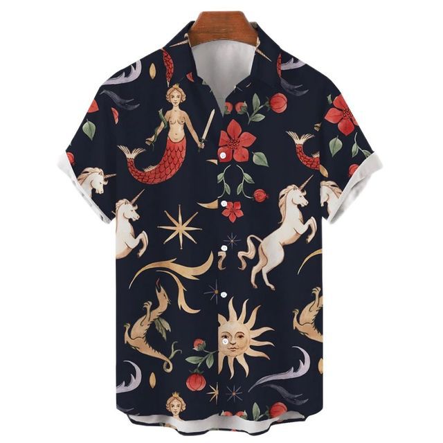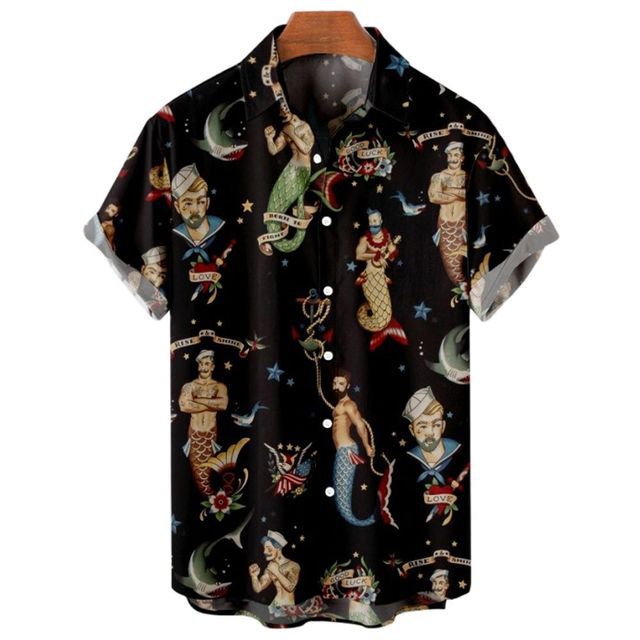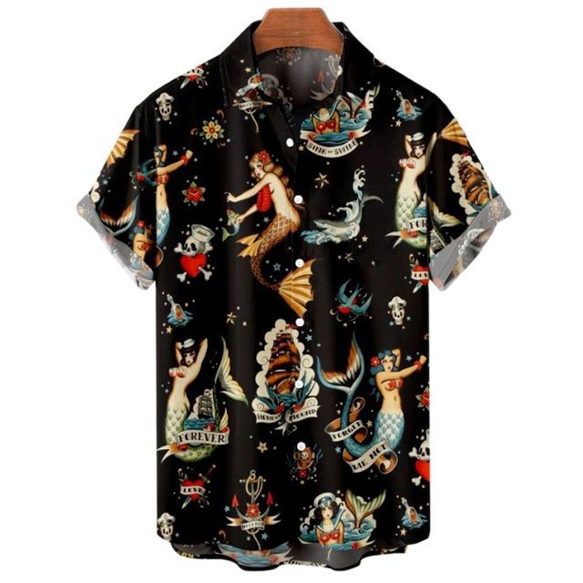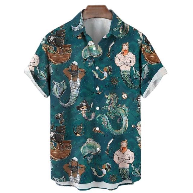 2023 아마존 이베이 뜨거운 판매 여름 남자의 캐주얼 느슨한 3D 인어 인쇄 짧은 소매 셔츠스토어 가기