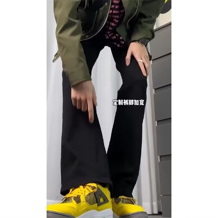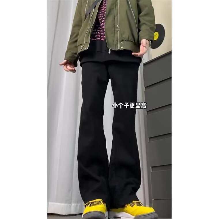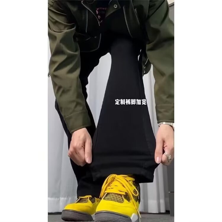 아메리칸 스타일 바이브 바지 하이 스트리트 퓨어 블랙 키가 큰 청바지 남성용 트렌디 한 슬림 핏 슬리밍 스트레이트 바지스토어 가기