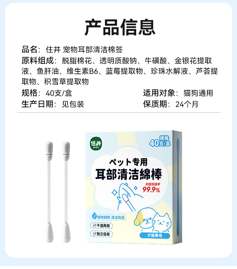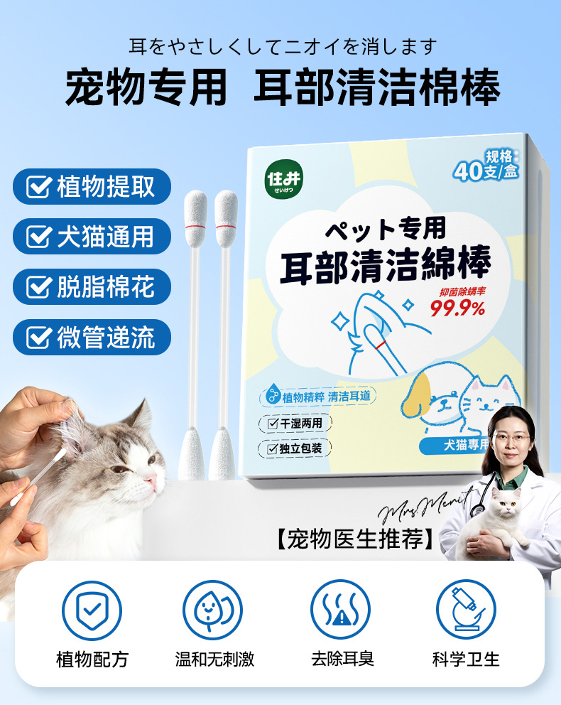 특수 귀 청소 면 스틱 잘 애완 동물 별도의 포장 브레이크 오프 고양이 애완 동물 제품 청소 도매