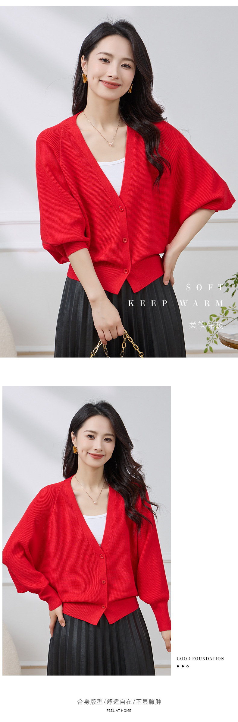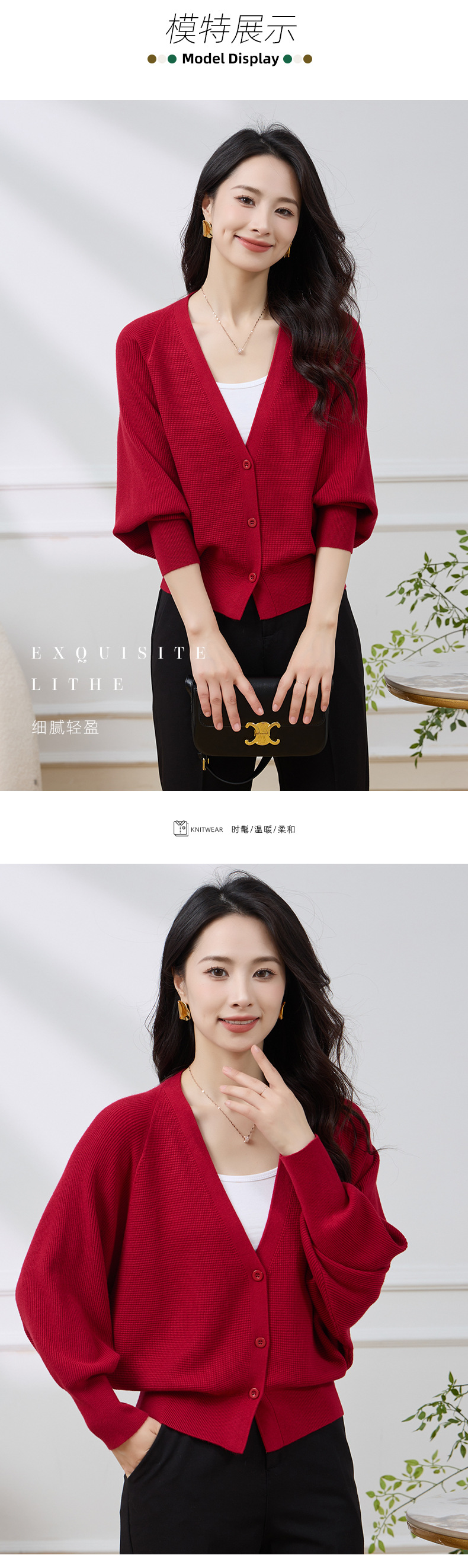 빅사이즈 여성 가을 겨울 스웨터 단색 바디커버 배트슬리브 브이넥 중간 길이 니트 가디건 아우터스토어 가기