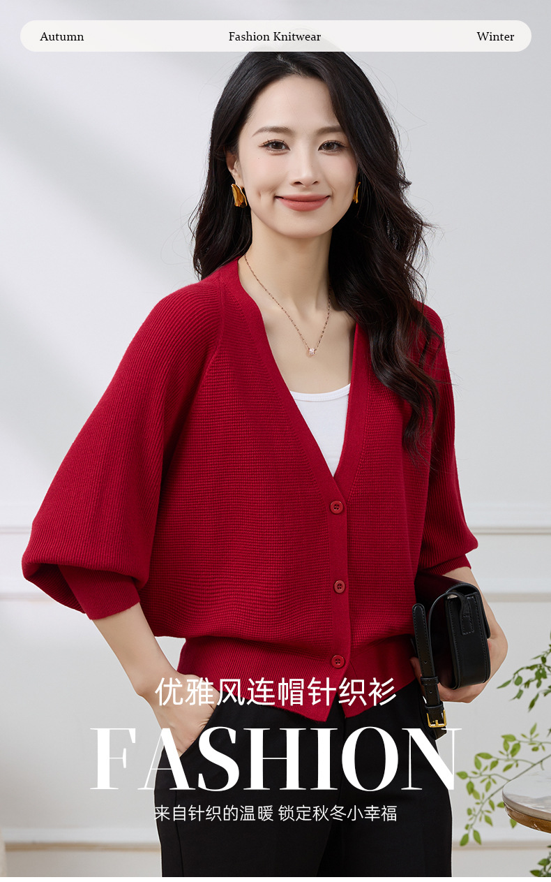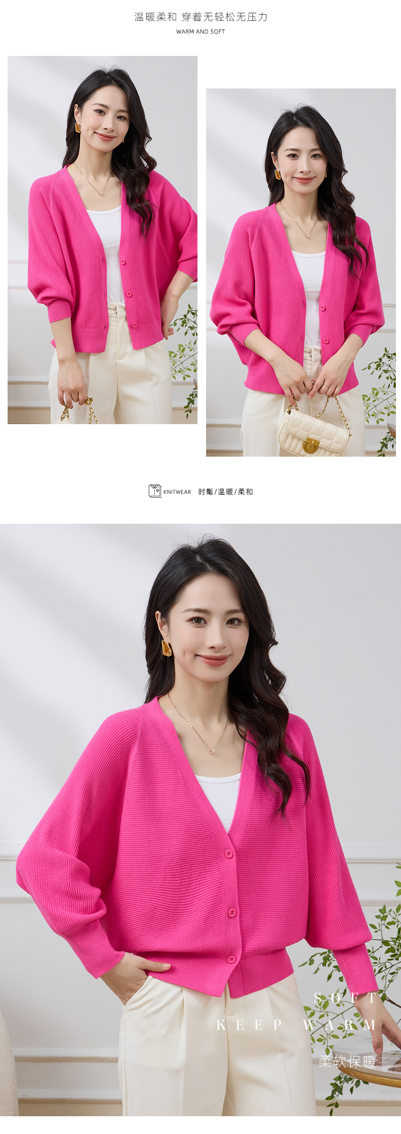 빅사이즈 여성 가을 겨울 스웨터 단색 바디커버 배트슬리브 브이넥 중간 길이 니트 가디건 아우터
