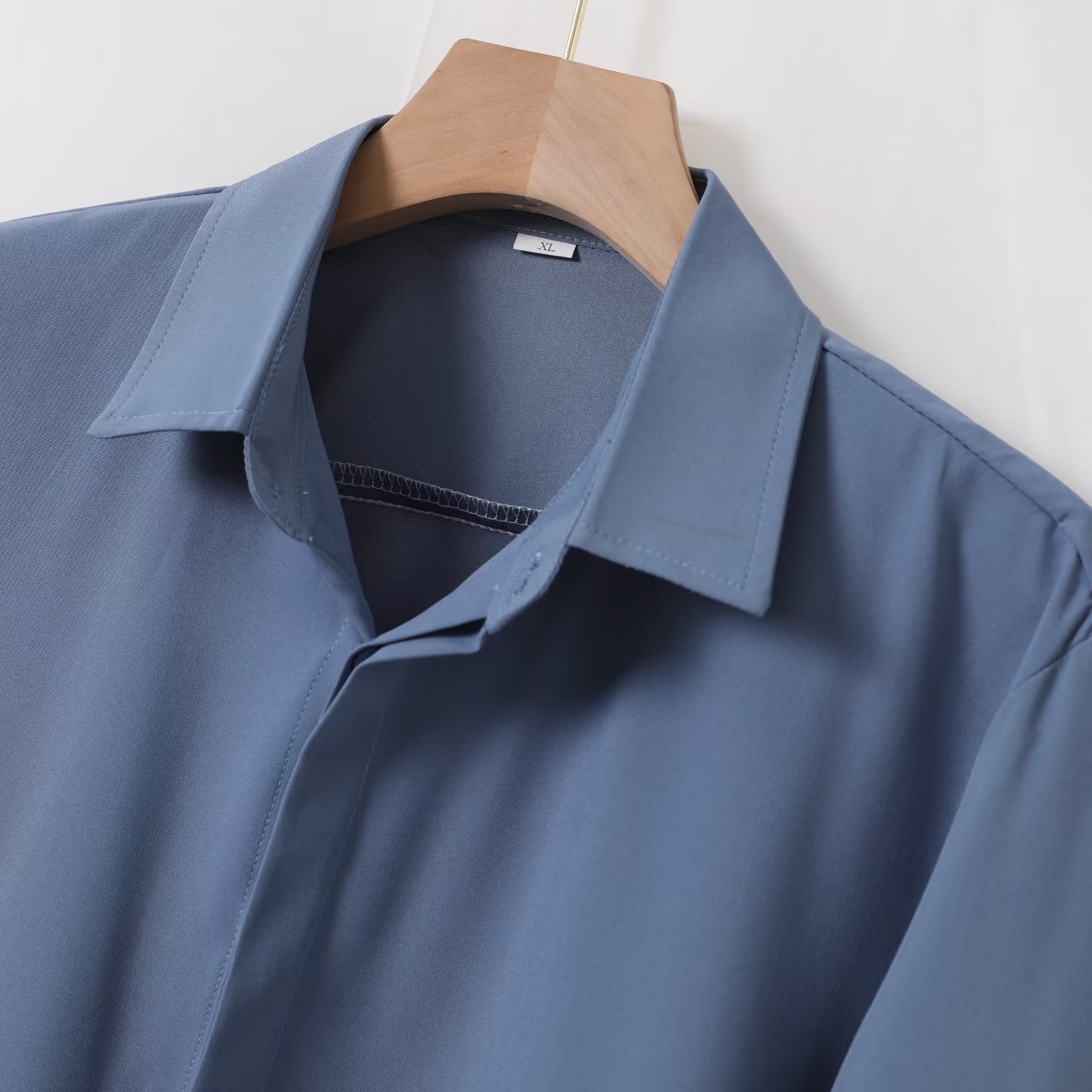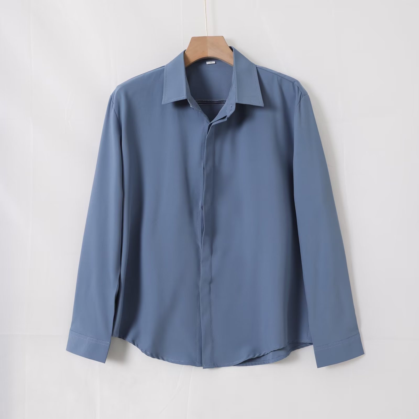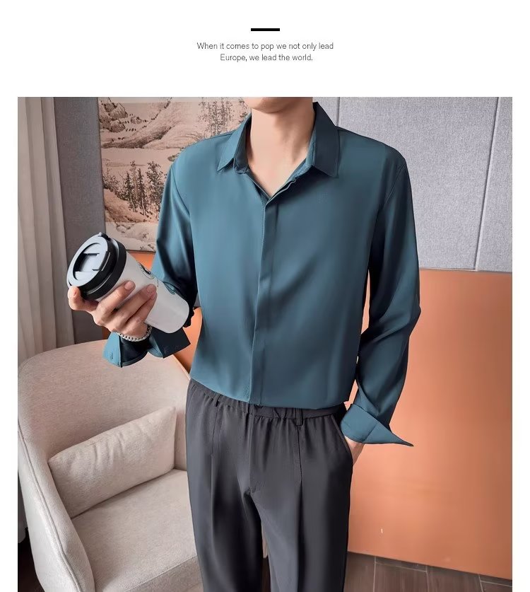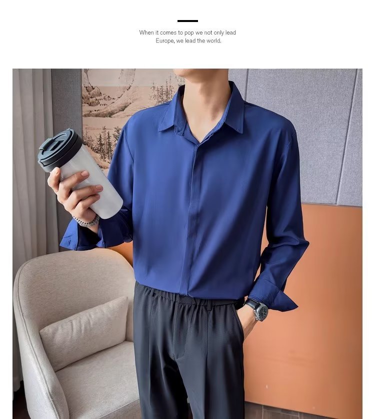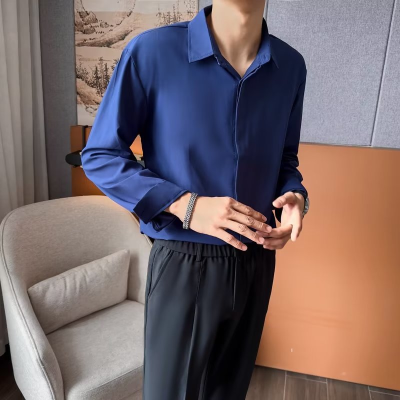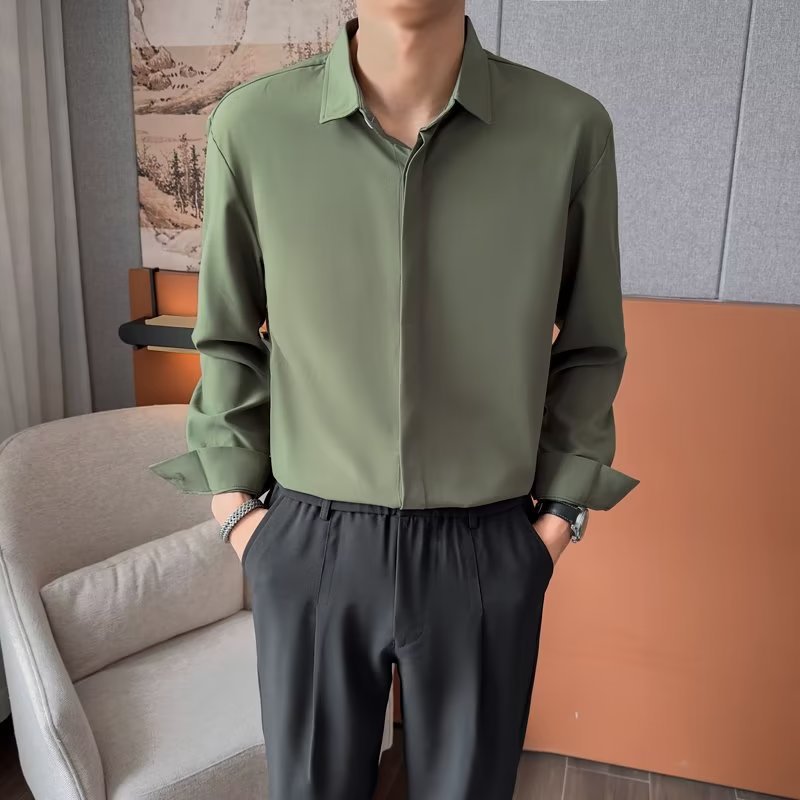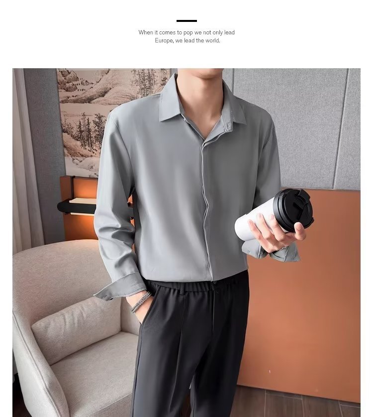 가을 남자의 긴 소매 숨겨진 버튼 다운 셔츠 원피스 비즈니스 내부 셔츠 느낌 비 다림질 캐주얼 유행 가벼운 성숙한 스타일스토어 가기