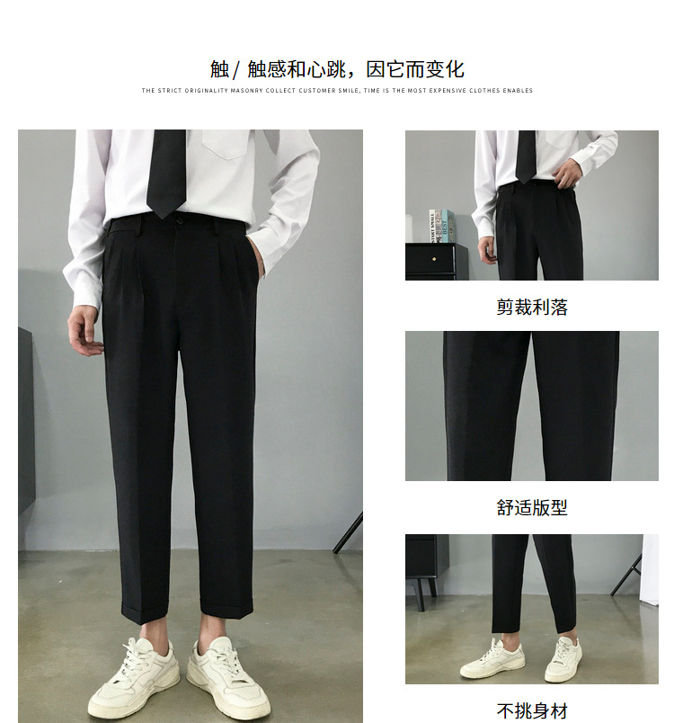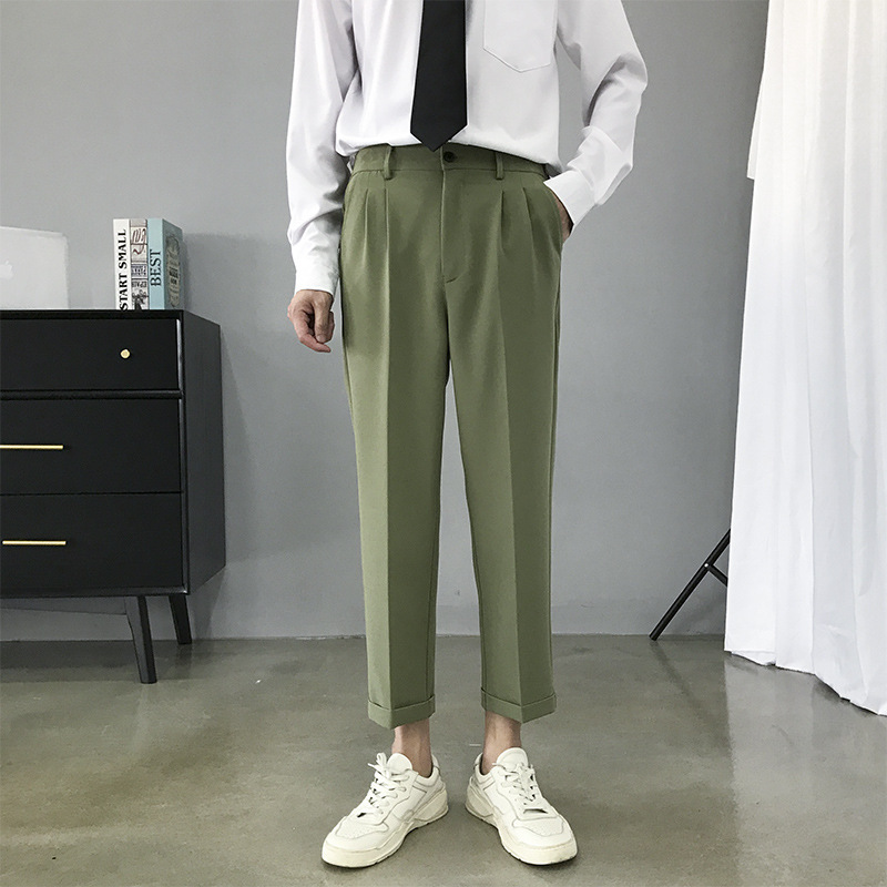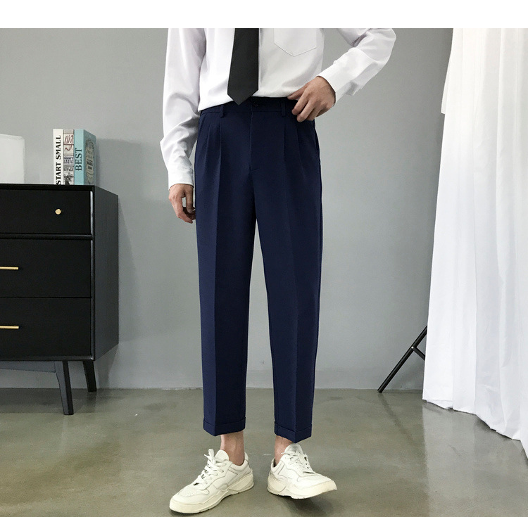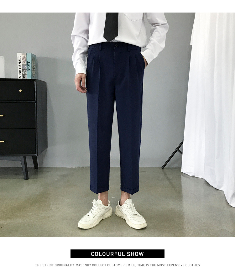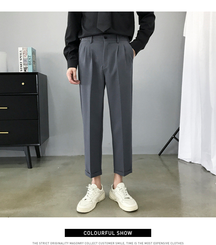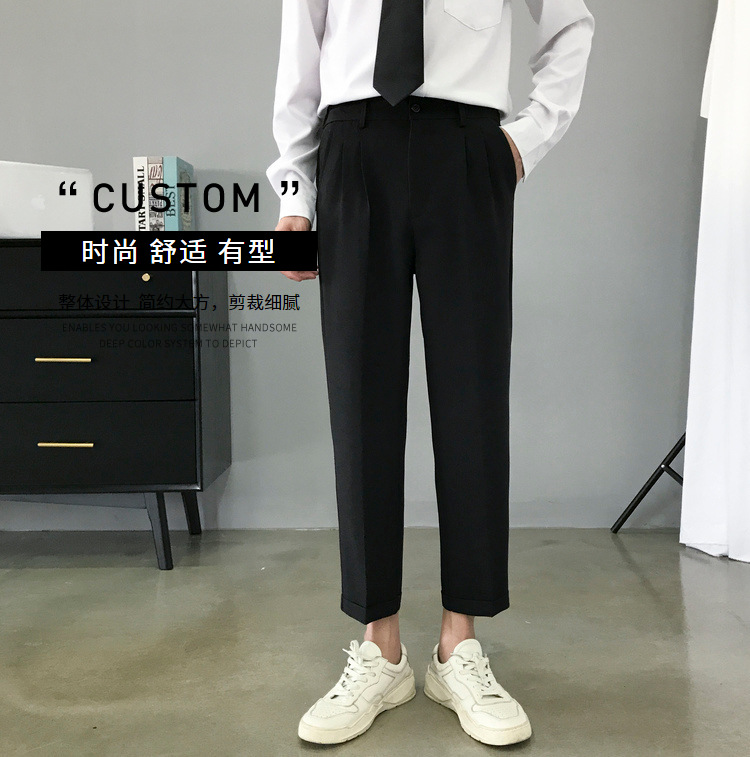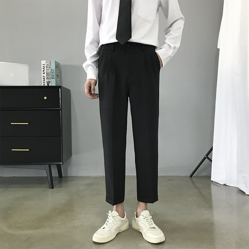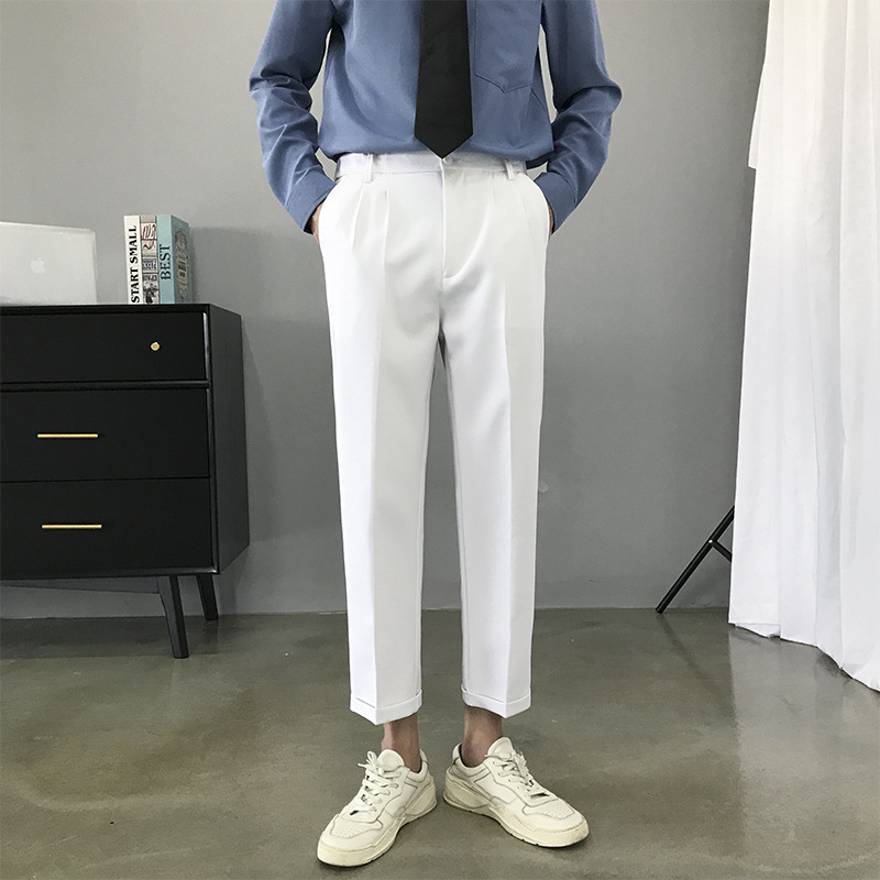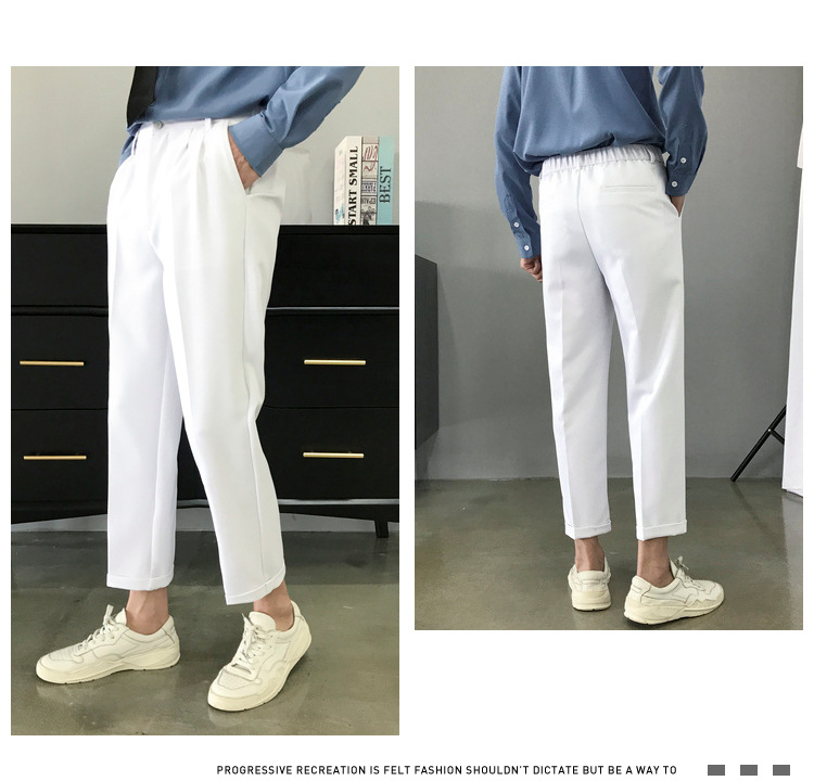 여름 펜던트 남자의 느슨한 발목 길이 바지 한국 스타일 스트레이트 남자 캐주얼 바지 흰색 유행 잘 생긴 작은 세트 바지스토어 가기