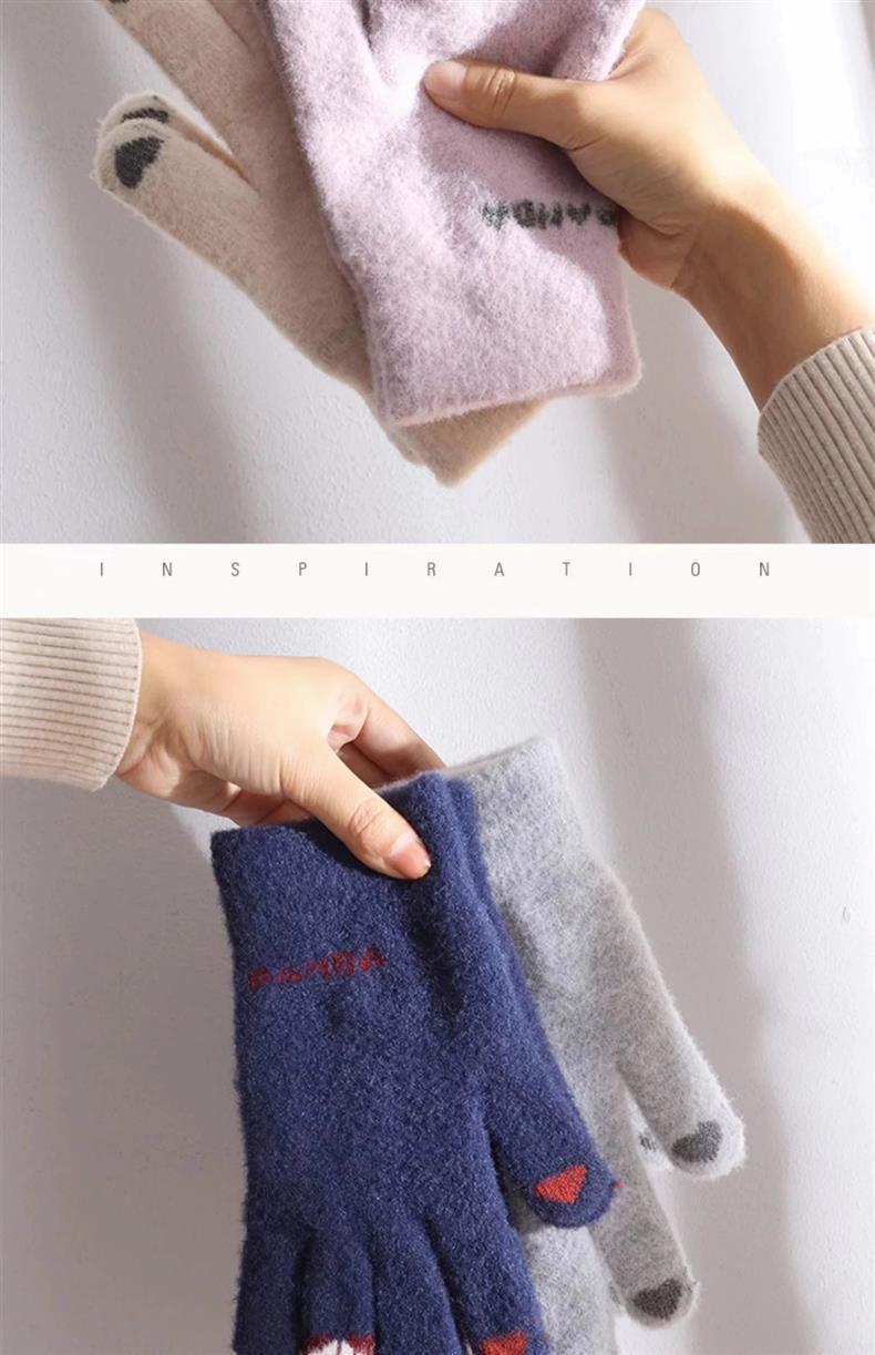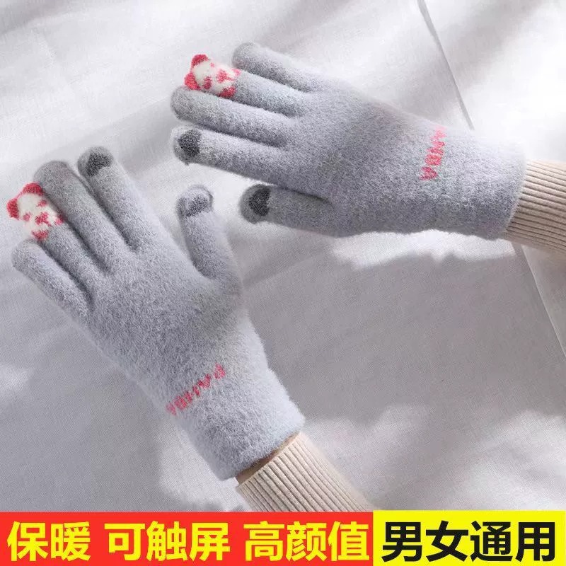 새로운 장갑 겨울 여성의 귀여운 기모 따뜻한 방한 터치 스크린 부드러운 소녀 자전거 학생 가을과 겨울에 다섯 손가락 자전거