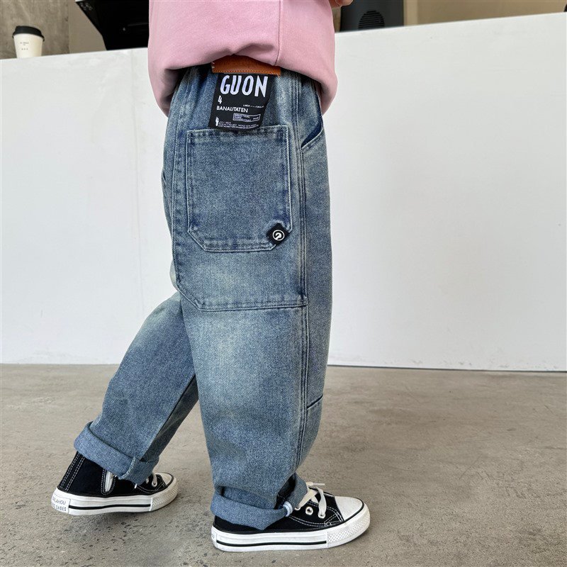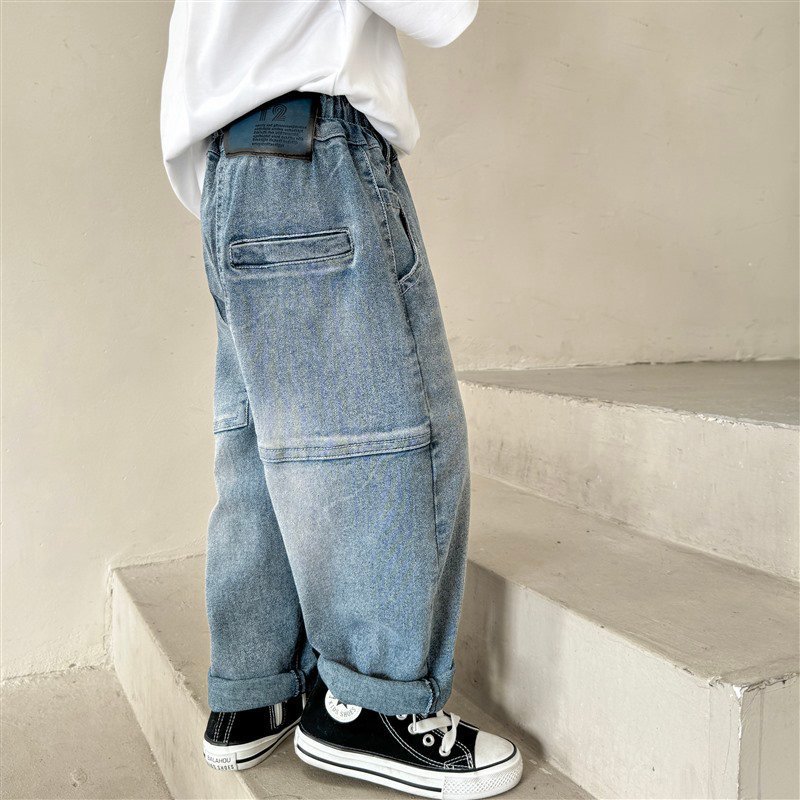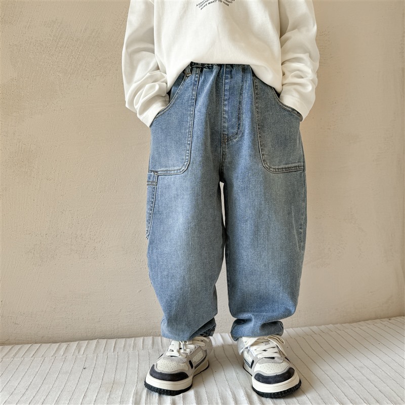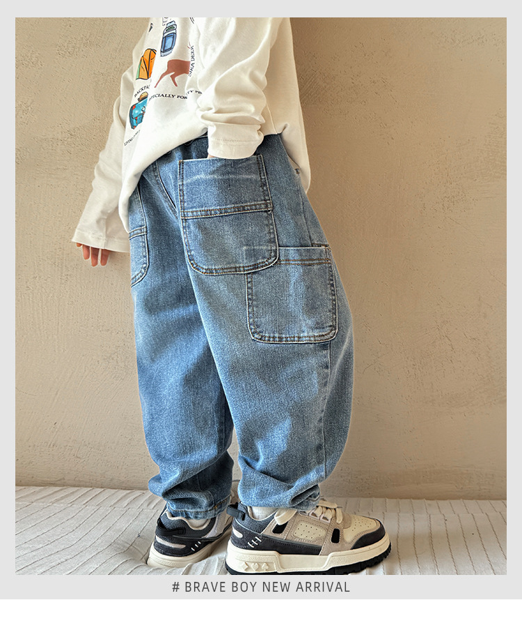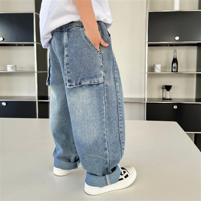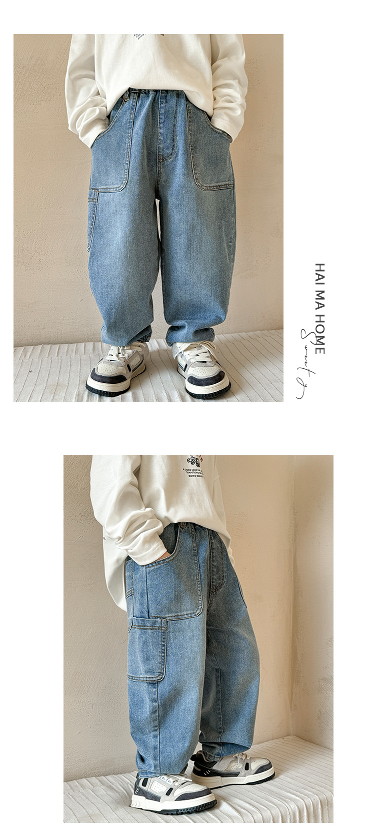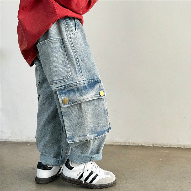 하이마지아 2026 남아용 봄가을 신상 큰 포켓 트렌디 데님 팬츠 아동 한국 스타일 아동복 긴바지 봄옷