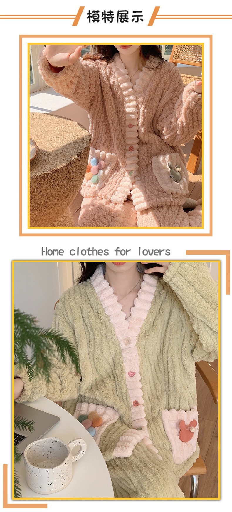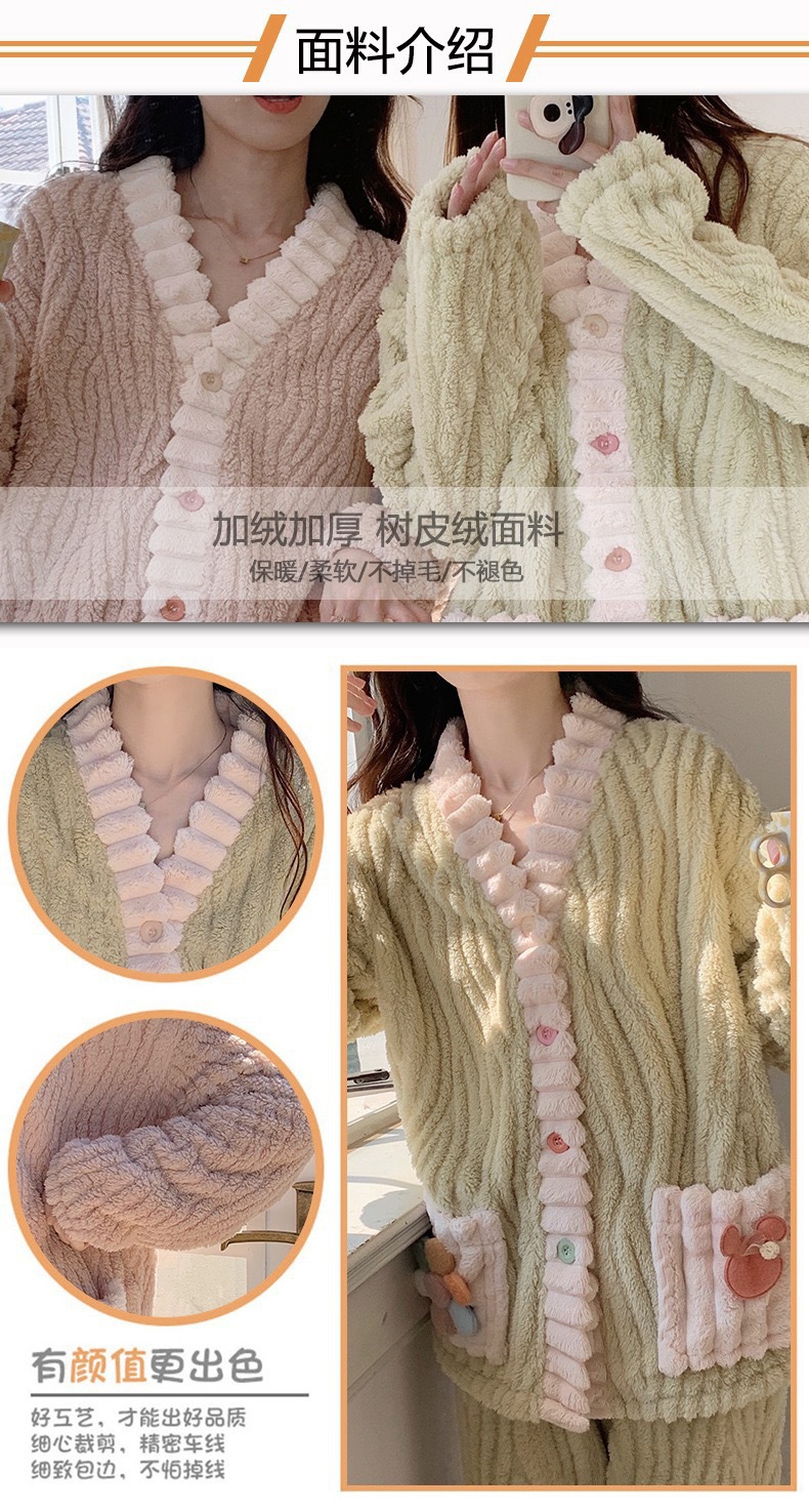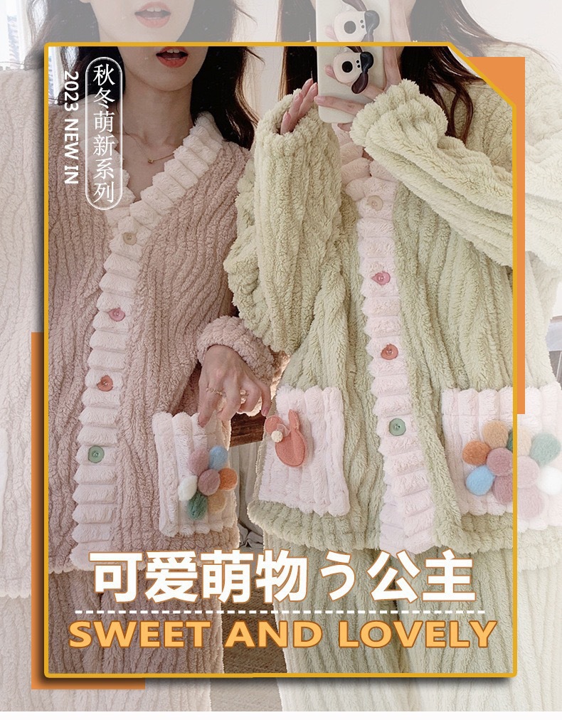 레인보우 가디건 플란넬 따뜻한 세트 가을 겨울 신상품 외출 가능 두꺼운 따뜻한 홈웨어 소녀 스타일