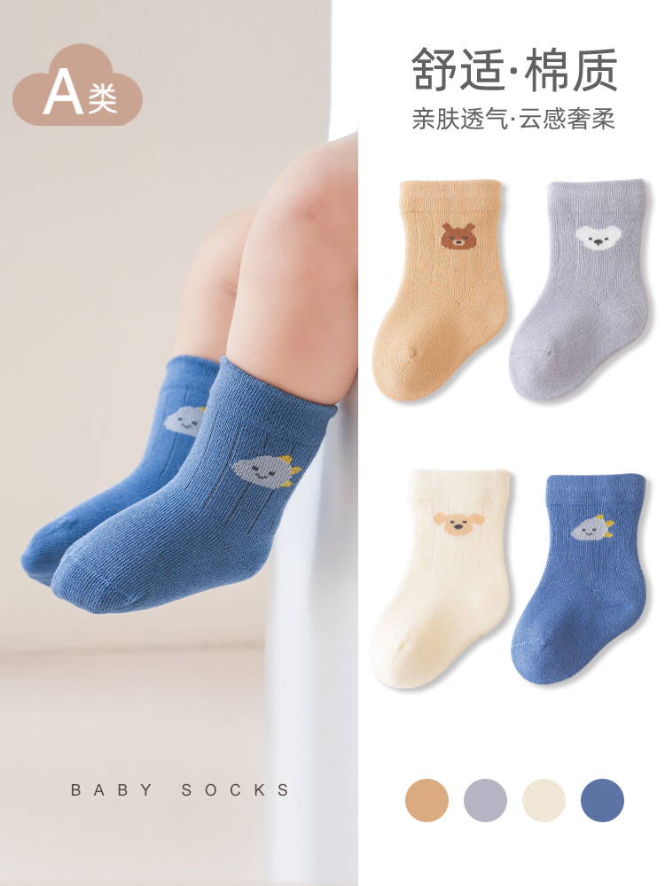 어린이 양말 봄과 가을 중간 튜브 양말 순수 코튼 뼈없는 클래스 A 코튼 양말 소년 소녀 어린이 유아 신생아