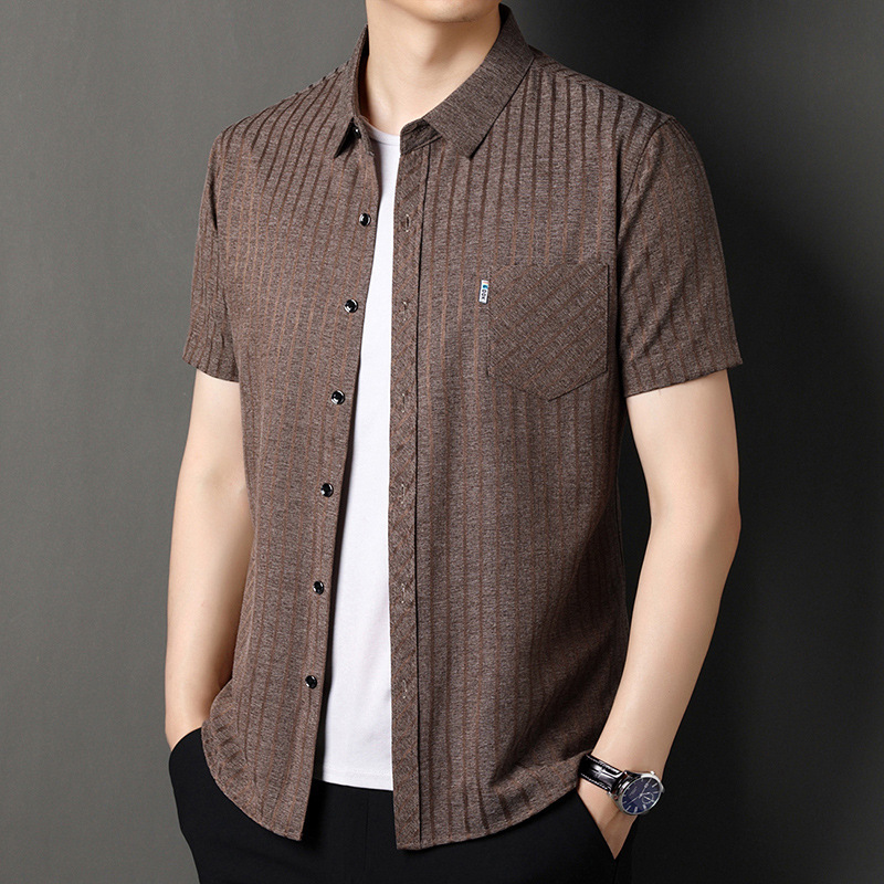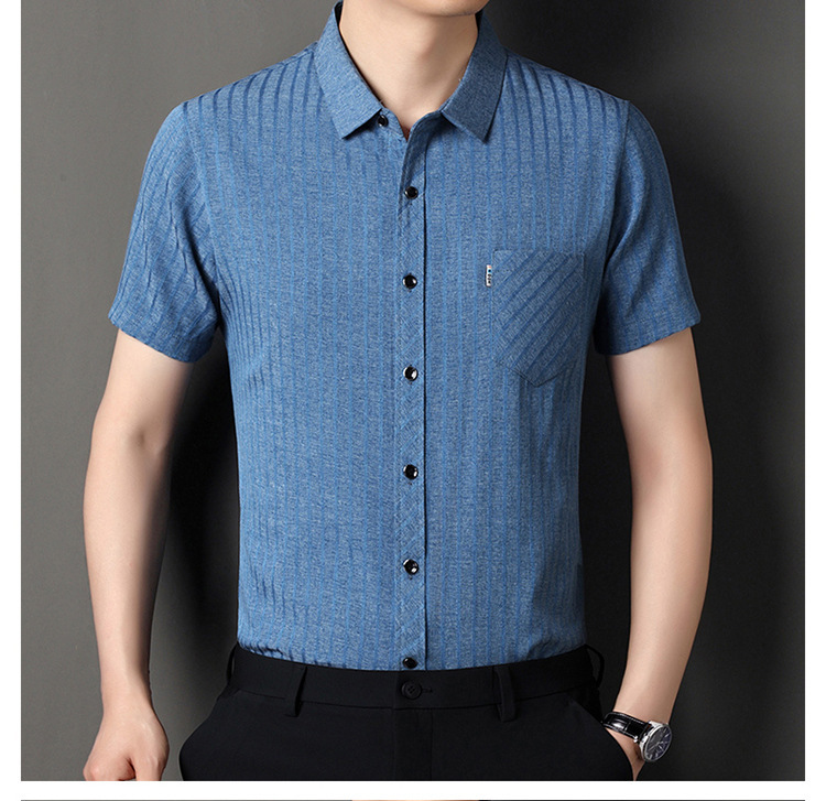중년 여름 남성용 멀버리 실크 반팔 셔츠 새로운 하이 엔드 루즈 캐주얼 리얼 포켓 노 아이언 반소매 셔츠스토어 가기