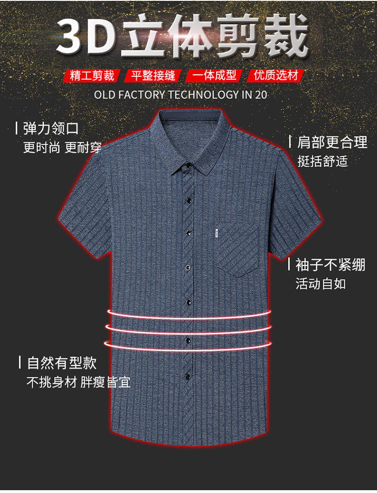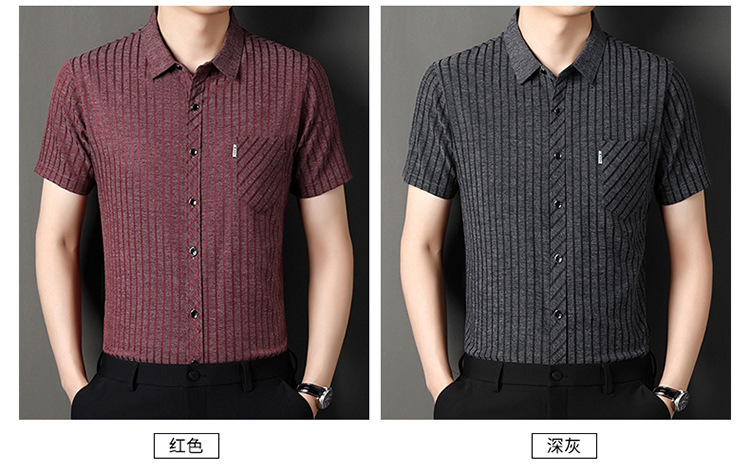 중년 여름 남성용 멀버리 실크 반팔 셔츠 새로운 하이 엔드 루즈 캐주얼 리얼 포켓 노 아이언 반소매 셔츠