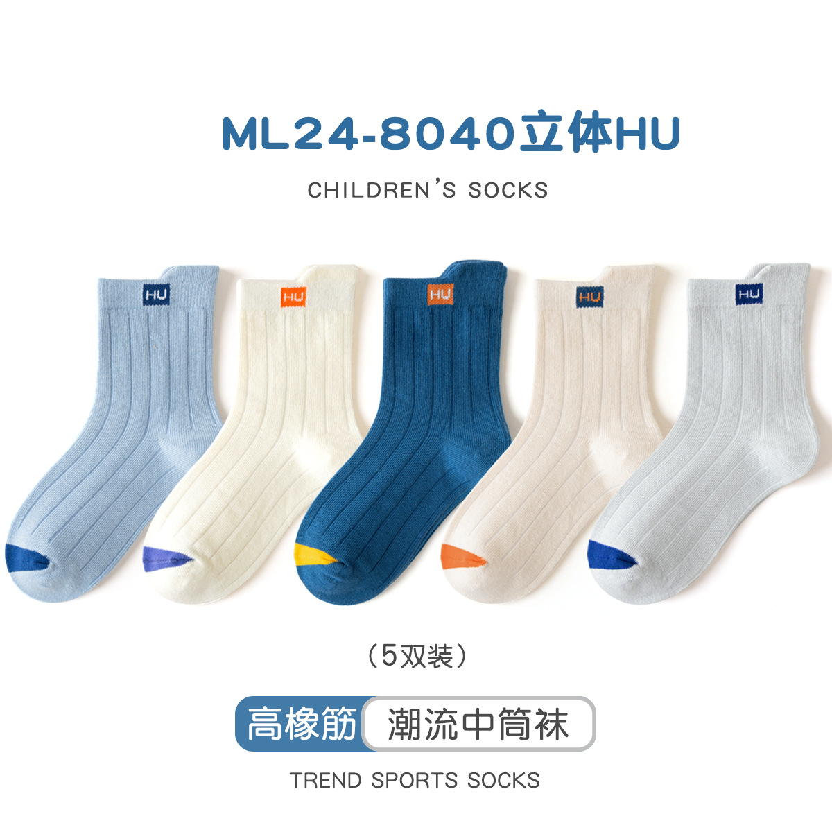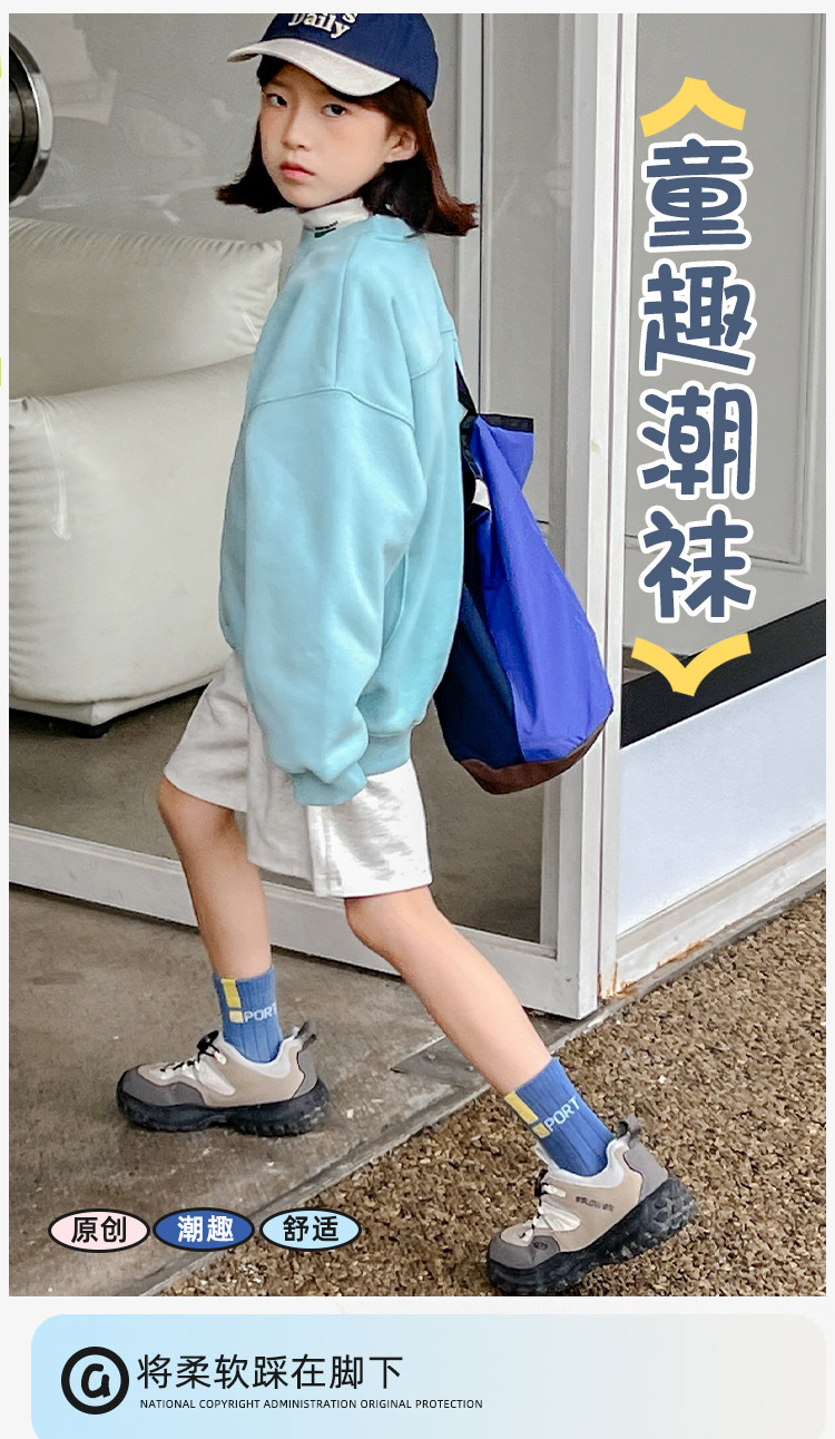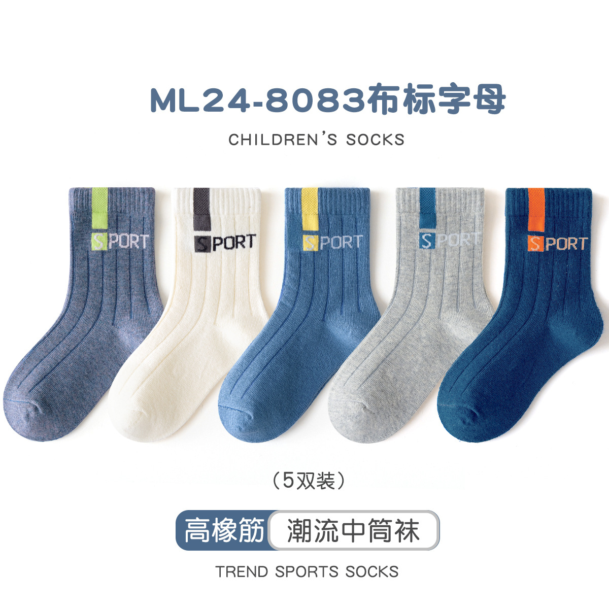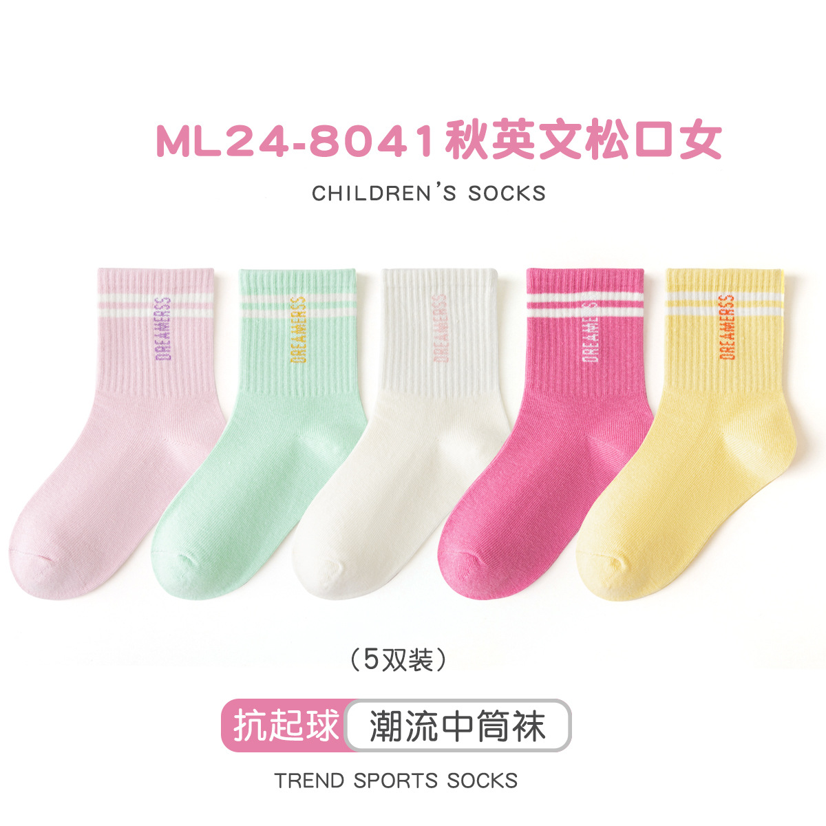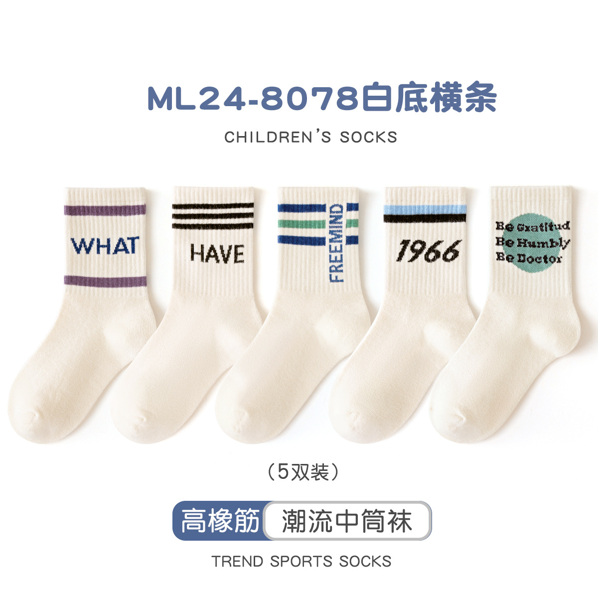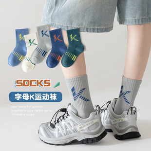 2024秋季中大童儿童袜子批发纯色字母中筒袜男女童高橡筋运动潮袜