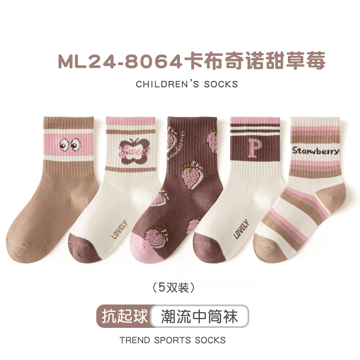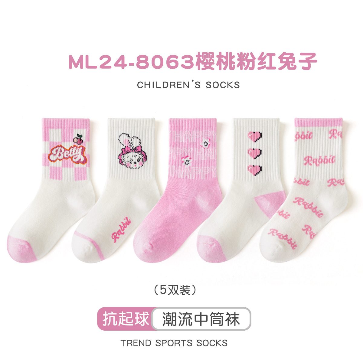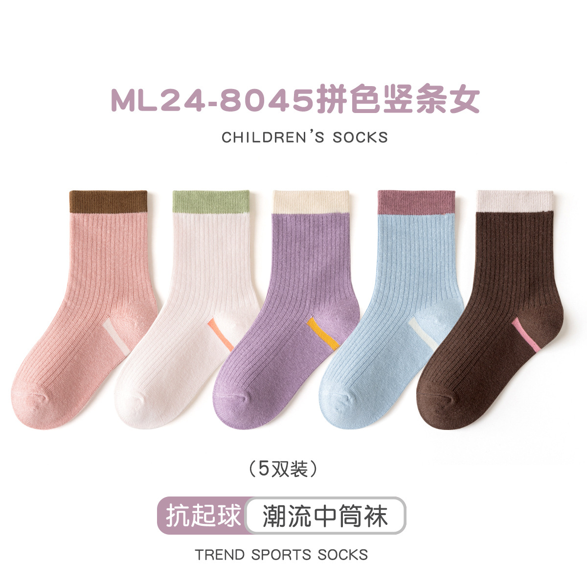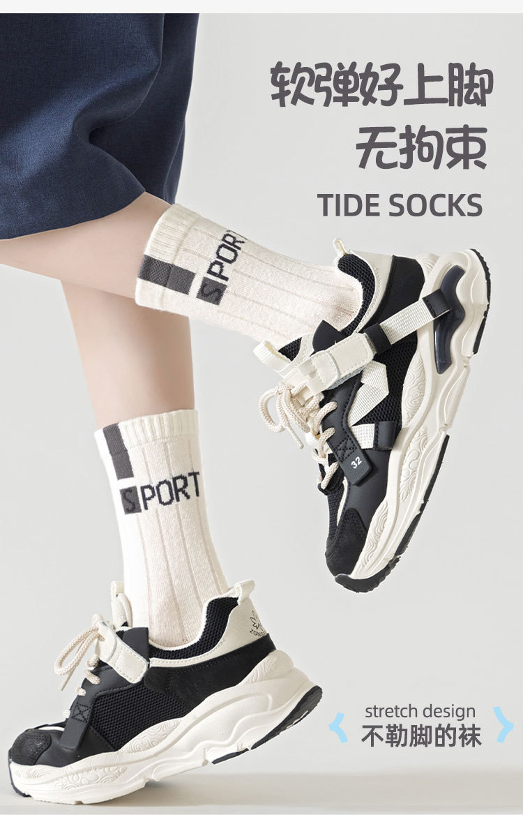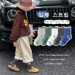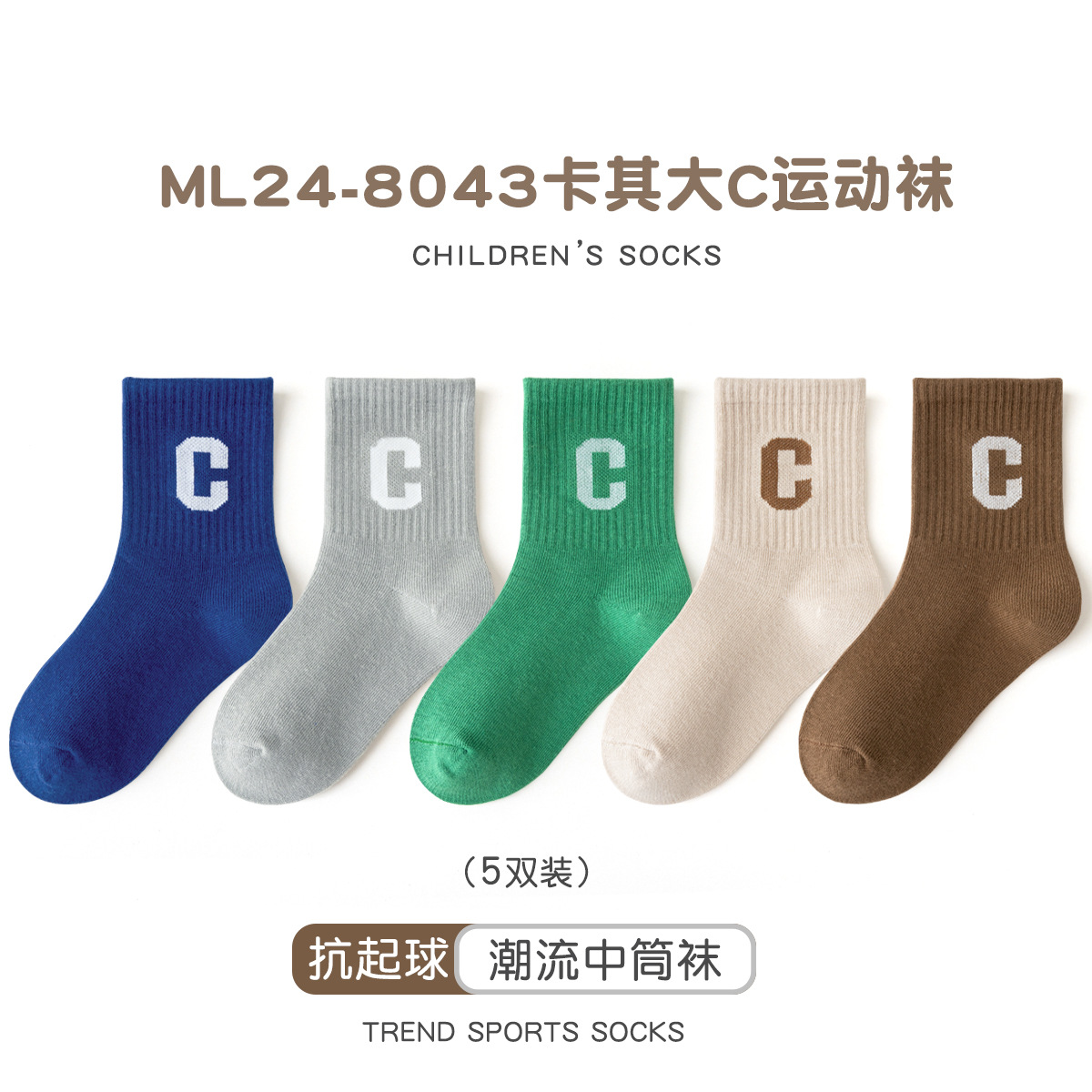2024秋季中大童儿童袜子批发纯色字母中筒袜男女童高橡筋运动潮袜