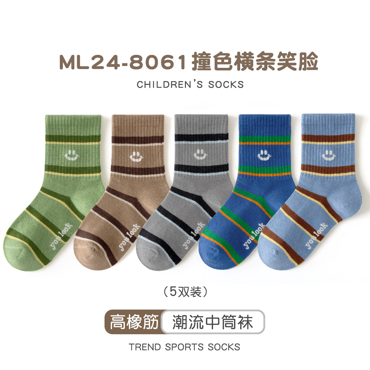 2024贝婴棉儿童袜子批发秋冬季拼色笑脸中筒袜吸汗透气男女童棉袜