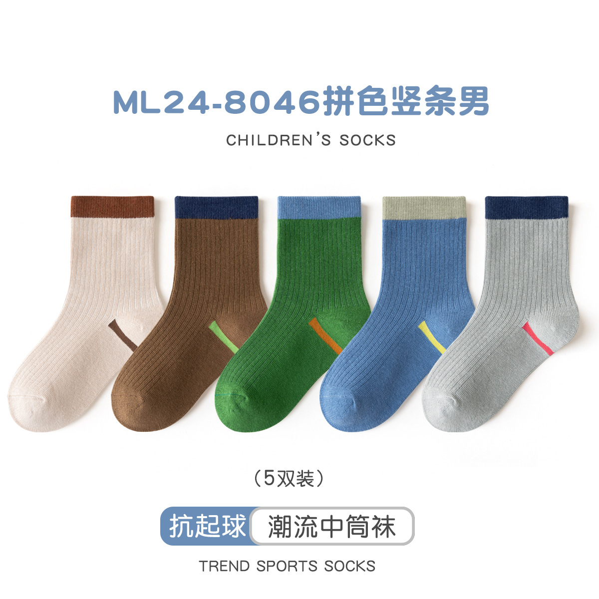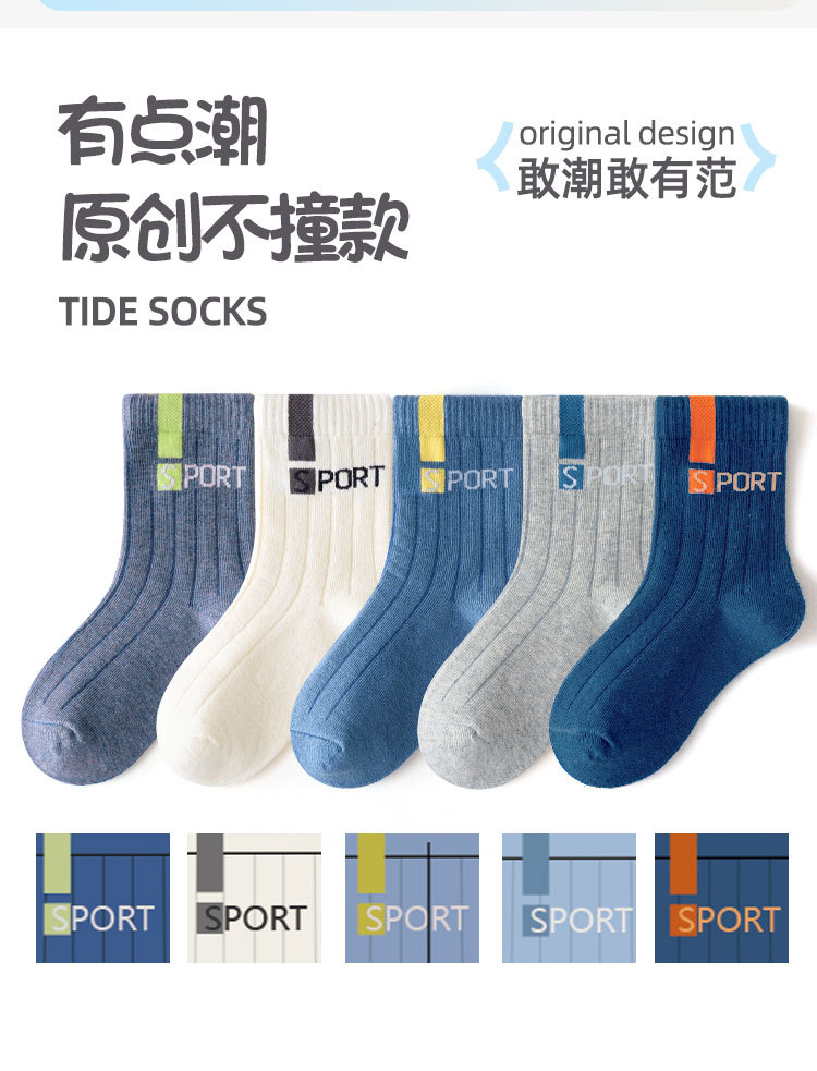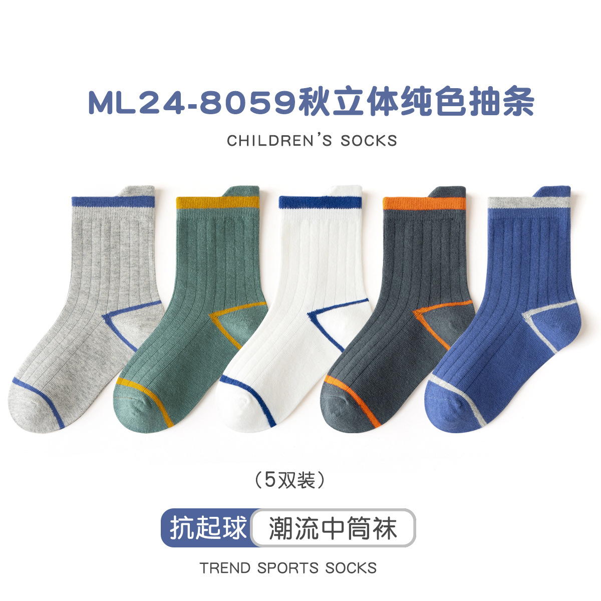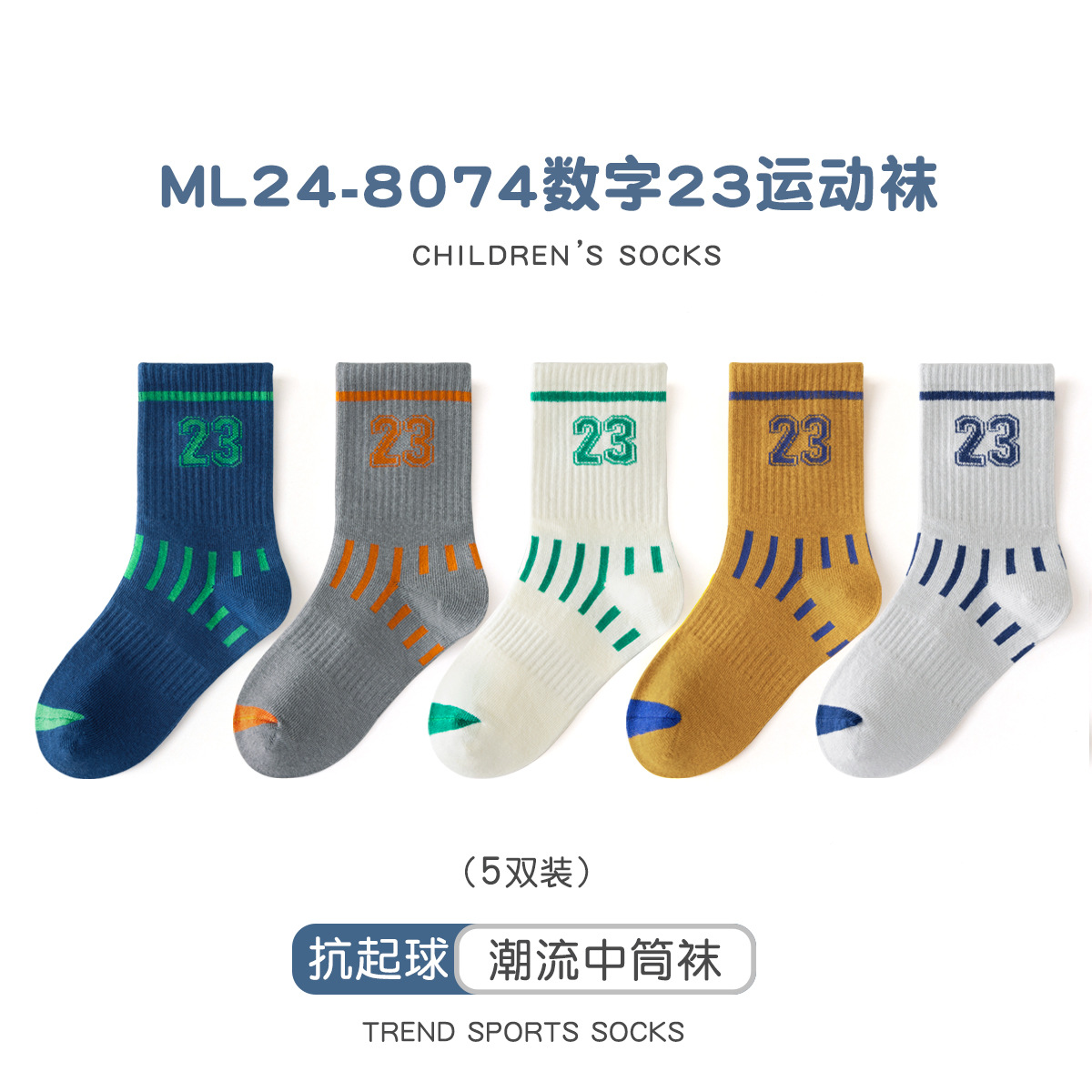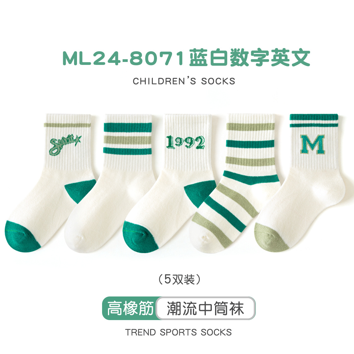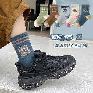 2024男童袜子批发春秋儿童运动棉袜中大童简约中筒袜数字学生袜
