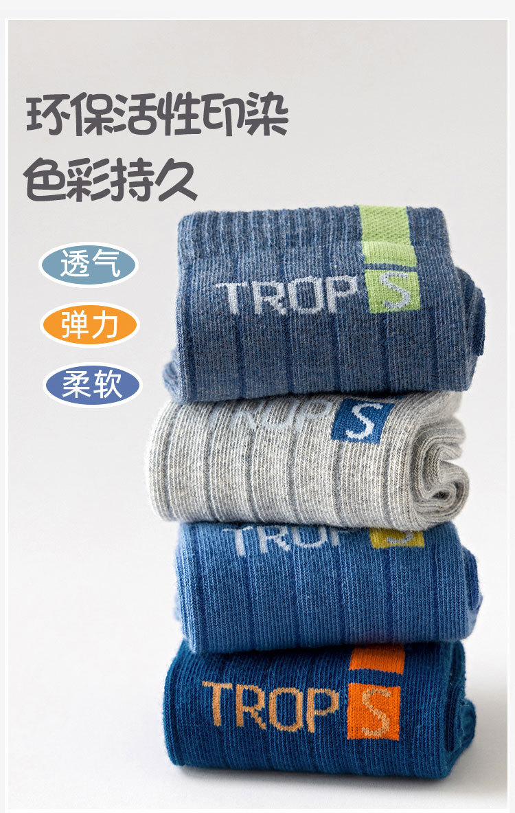 贝婴棉秋冬季儿童袜子透气棉袜男童字母布标潮袜中大童运动中筒袜