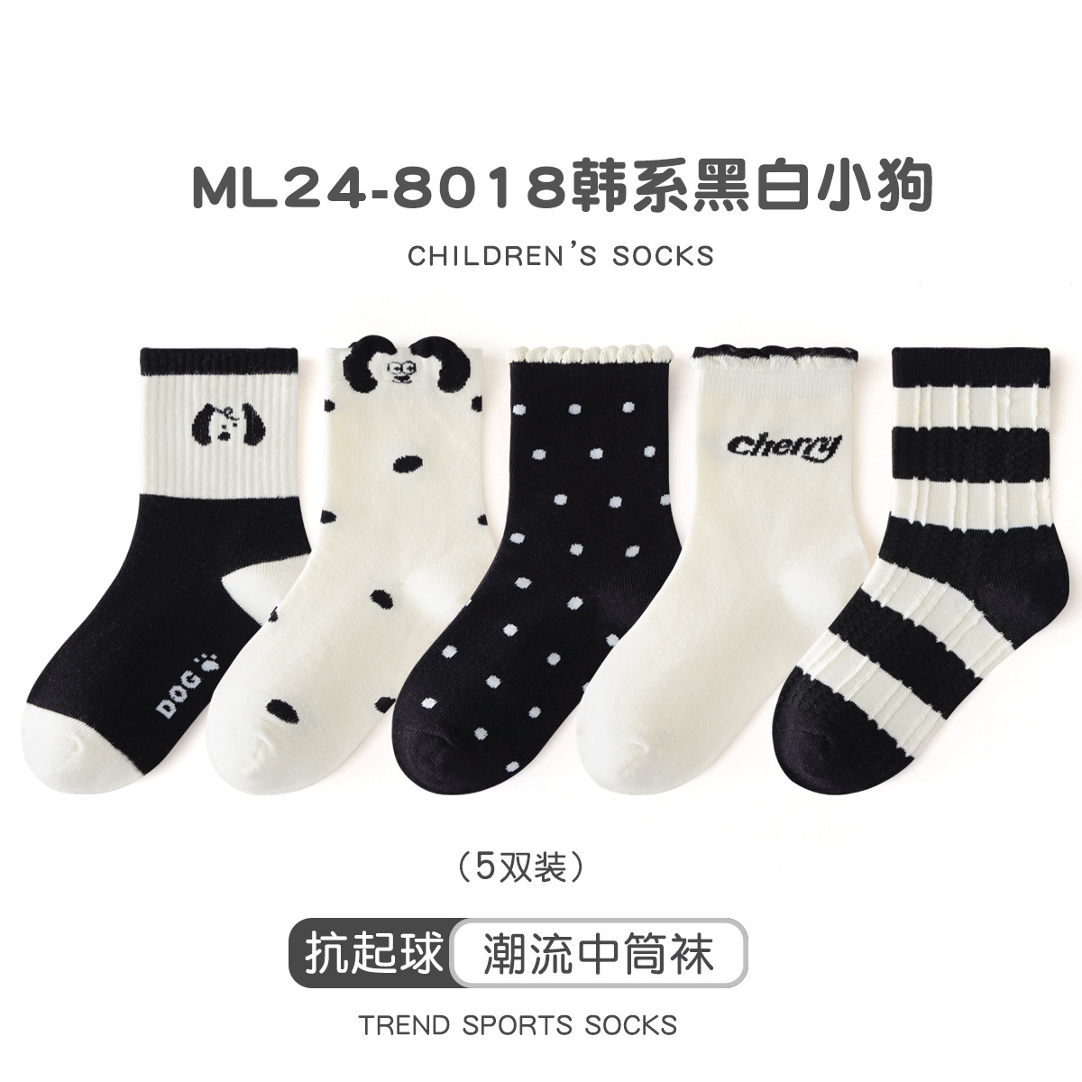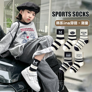 秋冬季儿童袜子批发黑白条纹百搭学生袜吸汗透气男女童潮流中筒袜