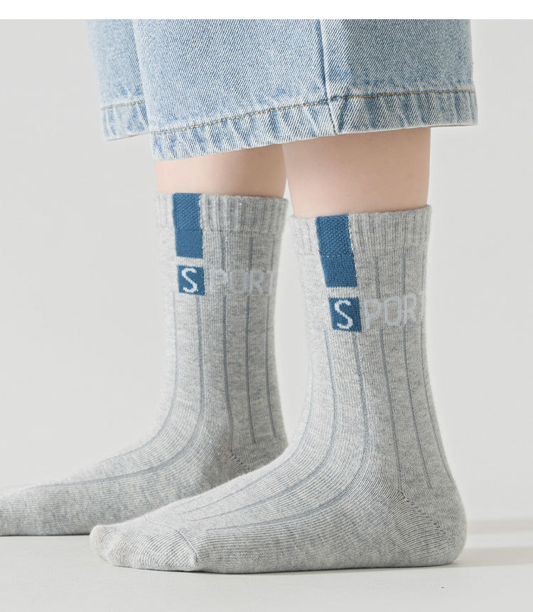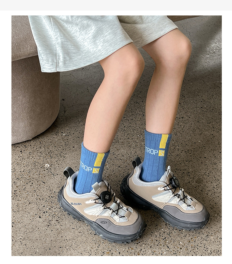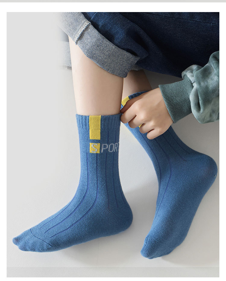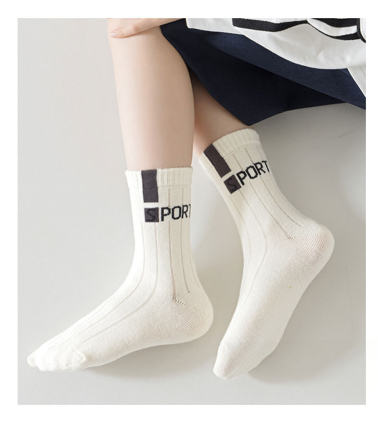 북경 가을 겨울 어린이 양말 통기성 면 양말 소년 편지 헝겊 라벨 유행 양말 중 및 대형 어린이 스포츠 양말
