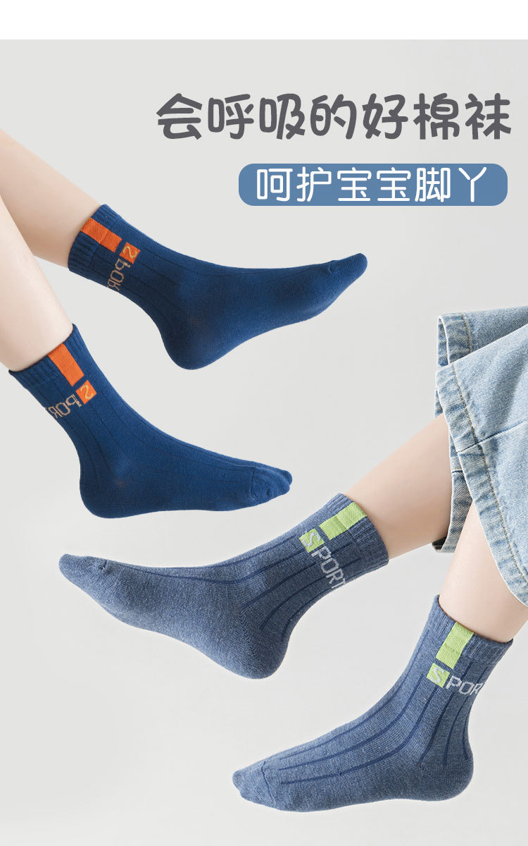 贝婴棉秋冬季儿童袜子批发立体后跟吸汗透气棉袜百搭运动中筒袜子