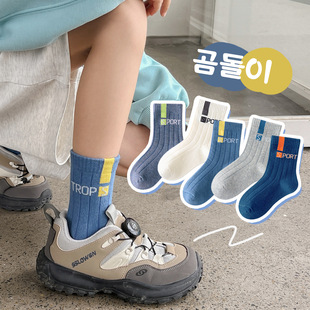 북경 가을 겨울 어린이 양말 통기성 면 양말 소년 편지 헝겊 라벨 유행 양말 중 및 대형 어린이 스포츠 양말스토어 가기