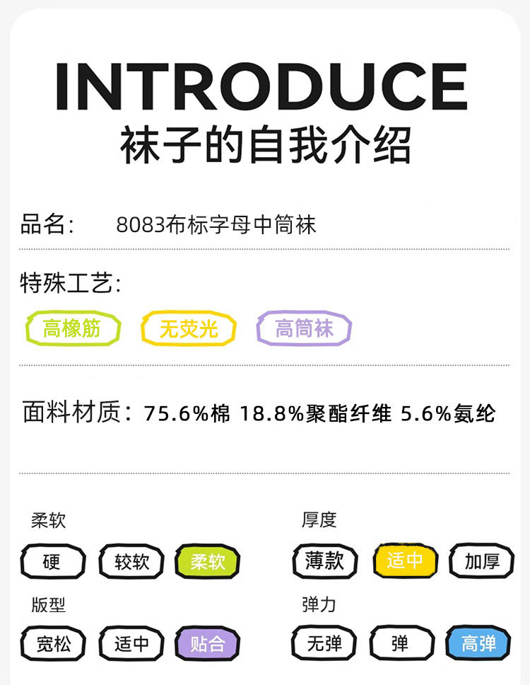 • ML24-8083 천 라벨 문자 중간 튜브 양말