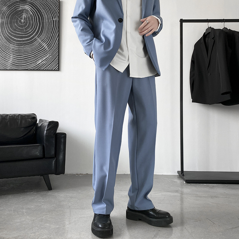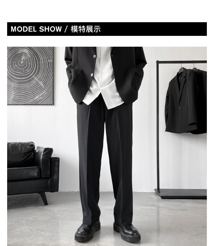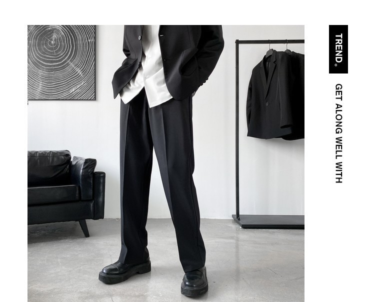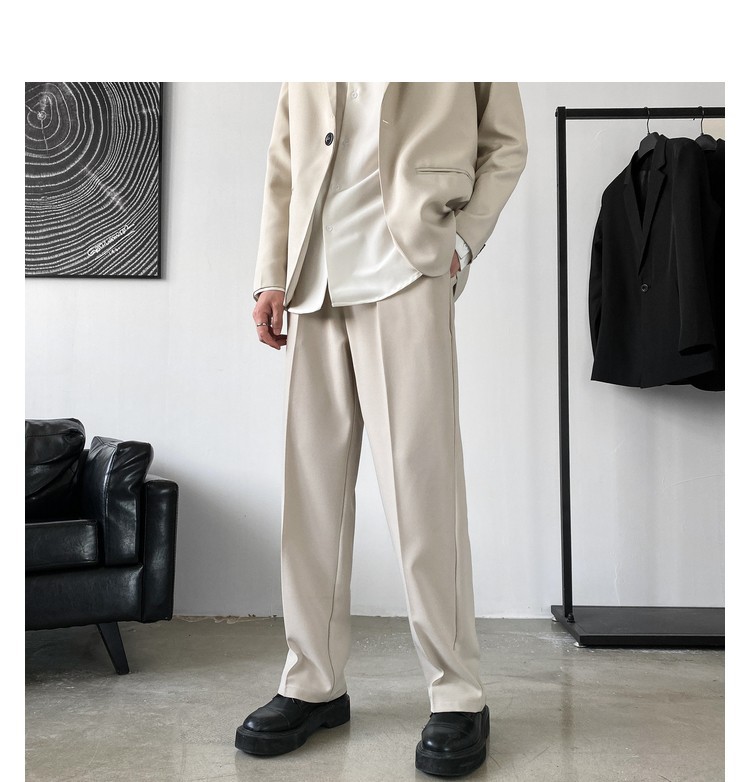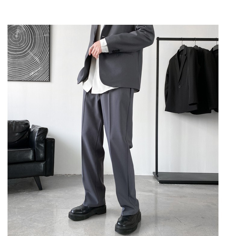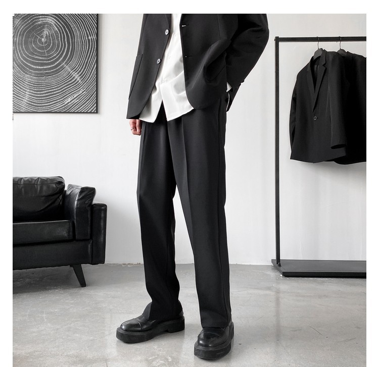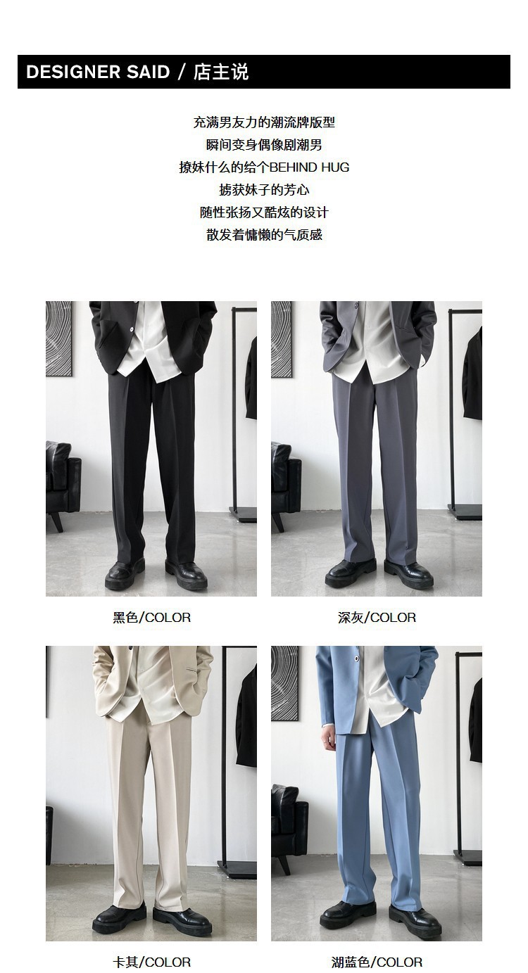 양탄자 허리 작은 서양 바지 남자 루즈 스트레이트 홍콩 스타일 올 매치 한국 스타일 패셔너블 캐주얼 펜던트 와이드 레그 발목 바지스토어 가기