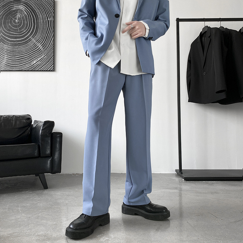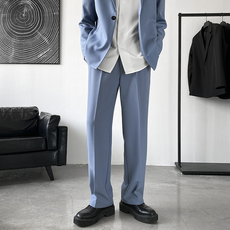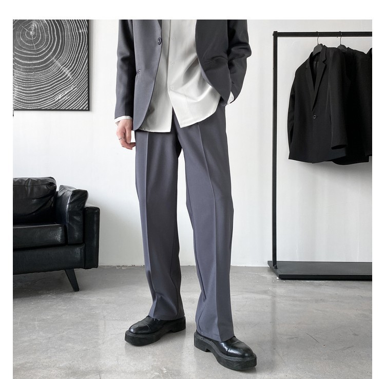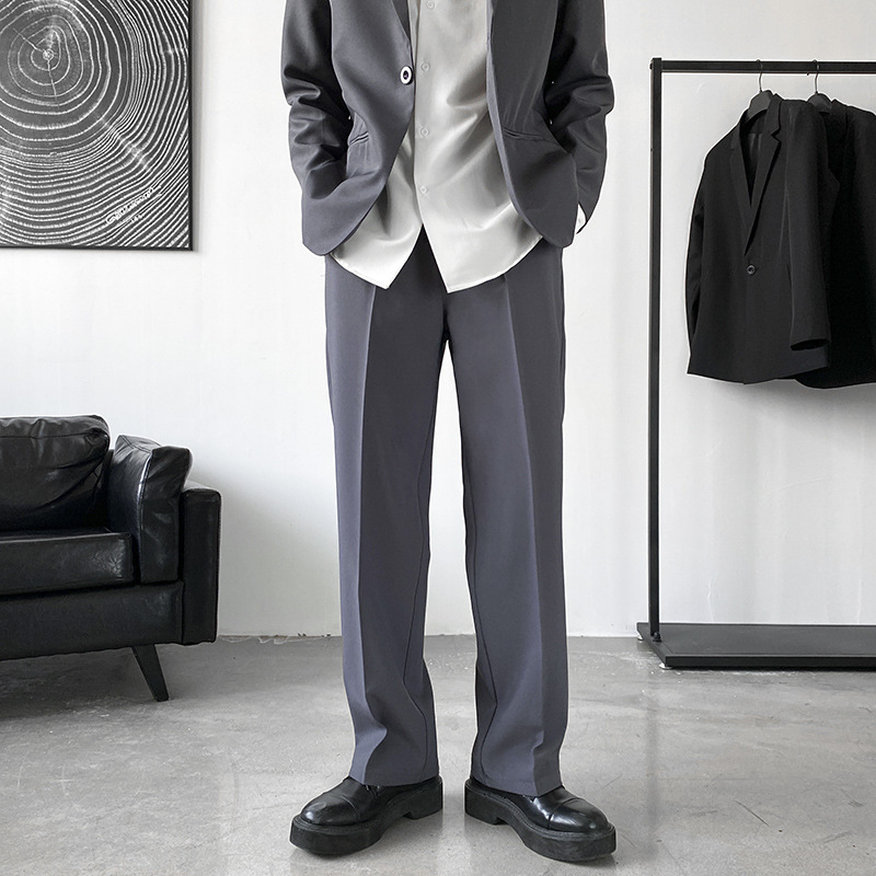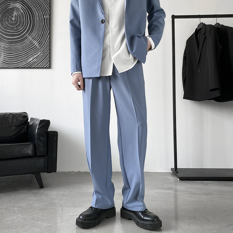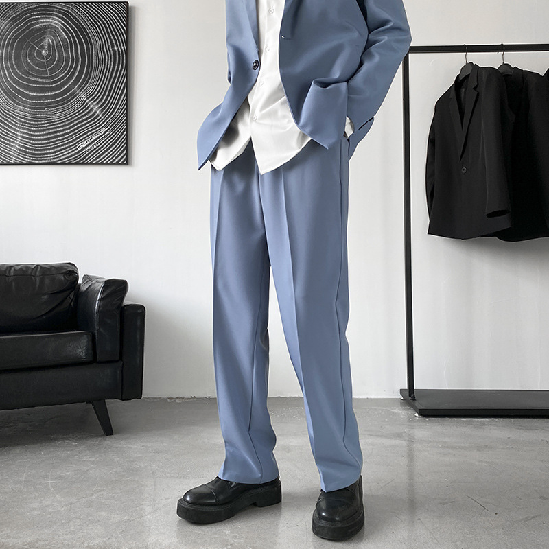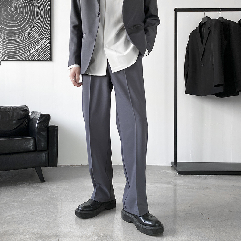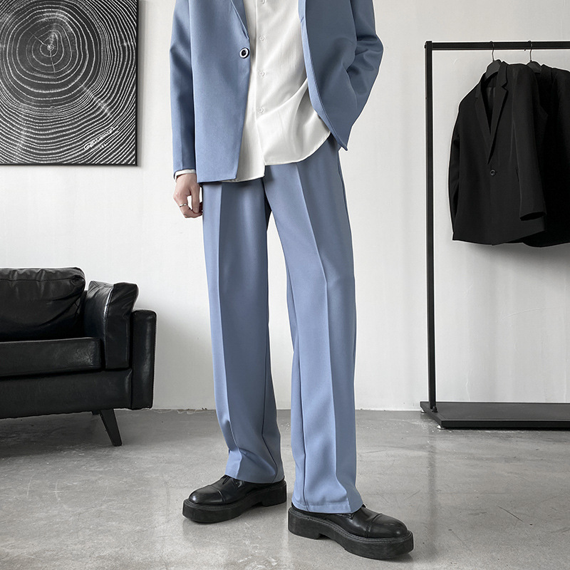 양탄자 허리 작은 서양 바지 남자 루즈 스트레이트 홍콩 스타일 올 매치 한국 스타일 패셔너블 캐주얼 펜던트 와이드 레그 발목 바지스토어 가기