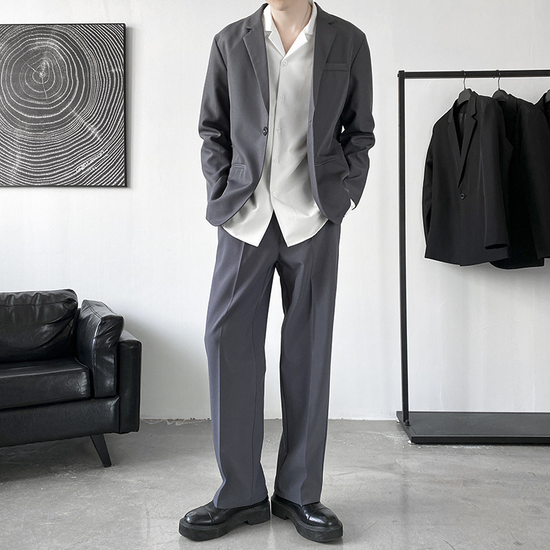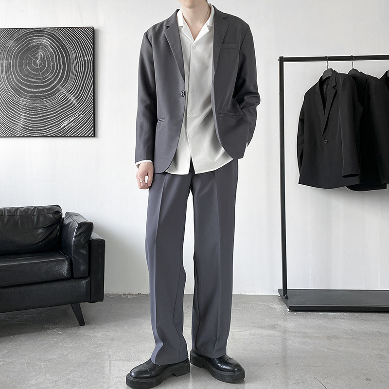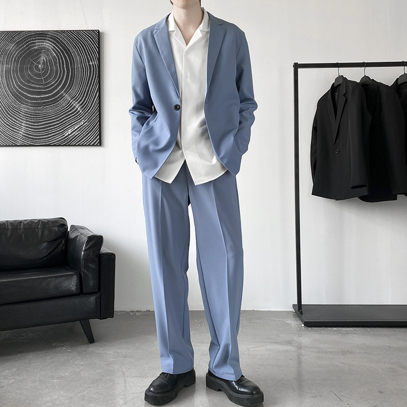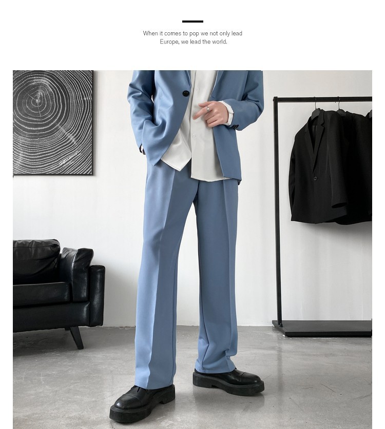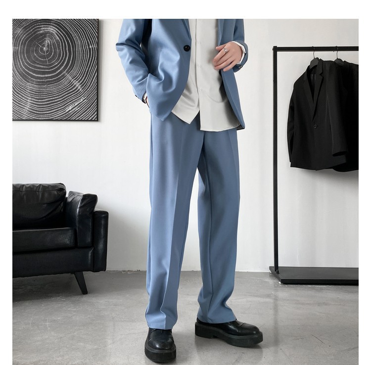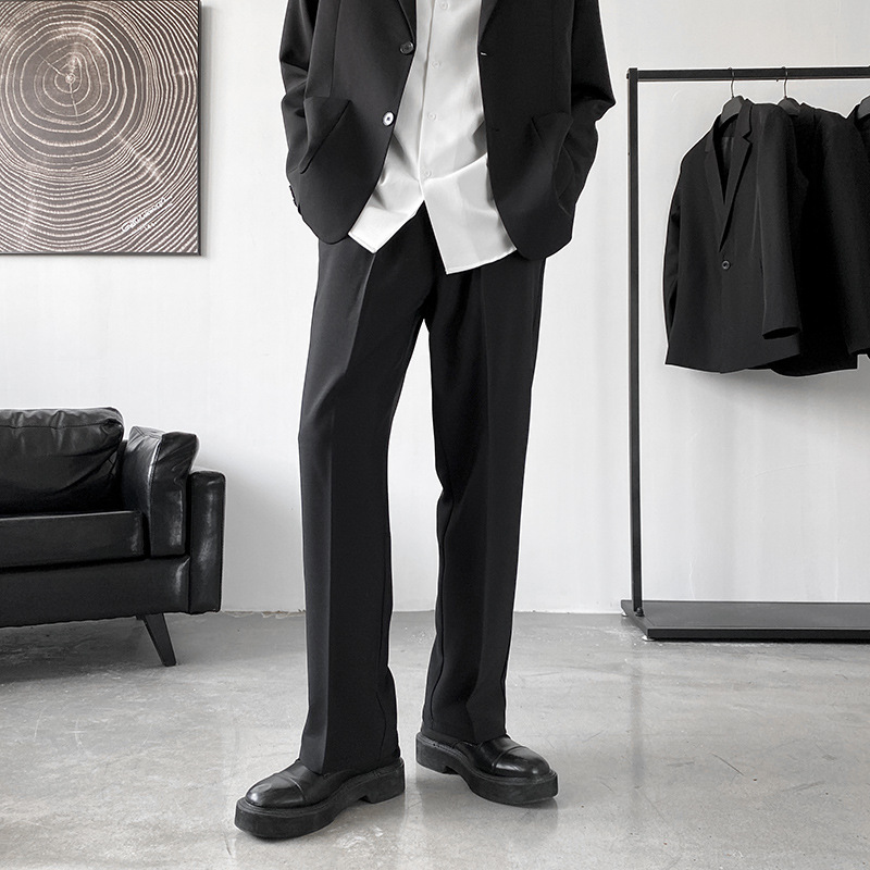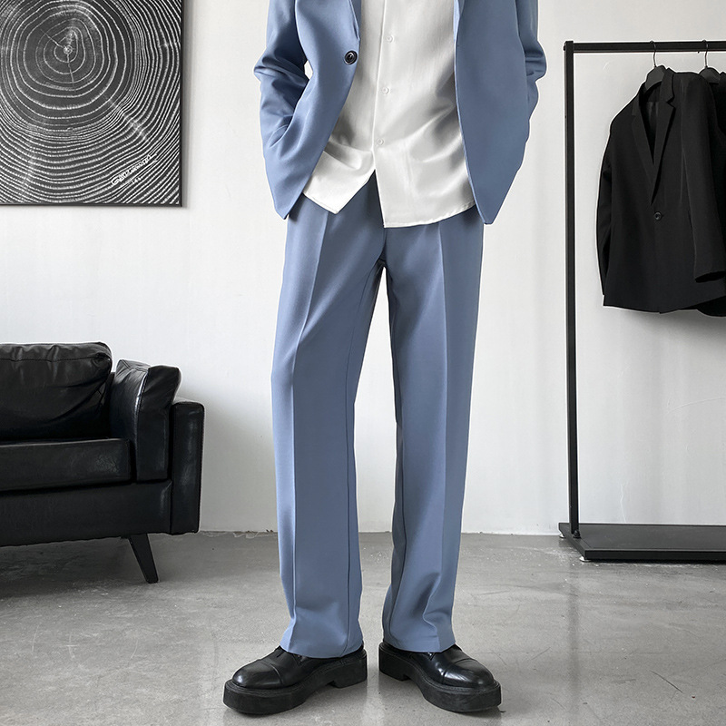 양탄자 허리 작은 서양 바지 남자 루즈 스트레이트 홍콩 스타일 올 매치 한국 스타일 패셔너블 캐주얼 펜던트 와이드 레그 발목 바지스토어 가기