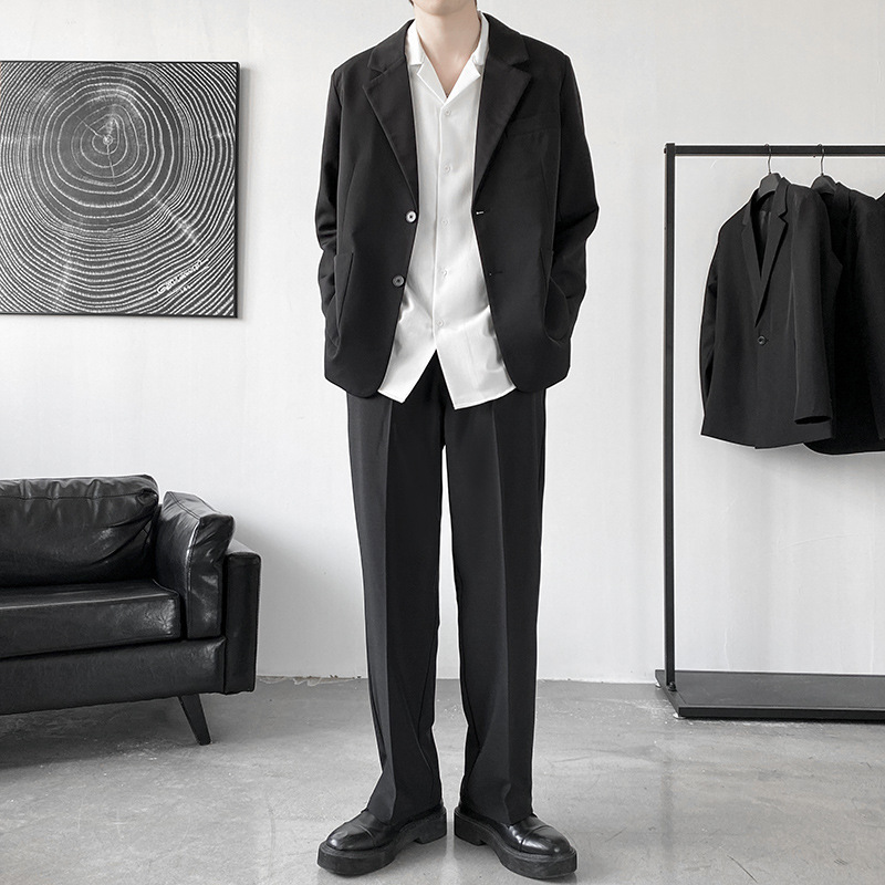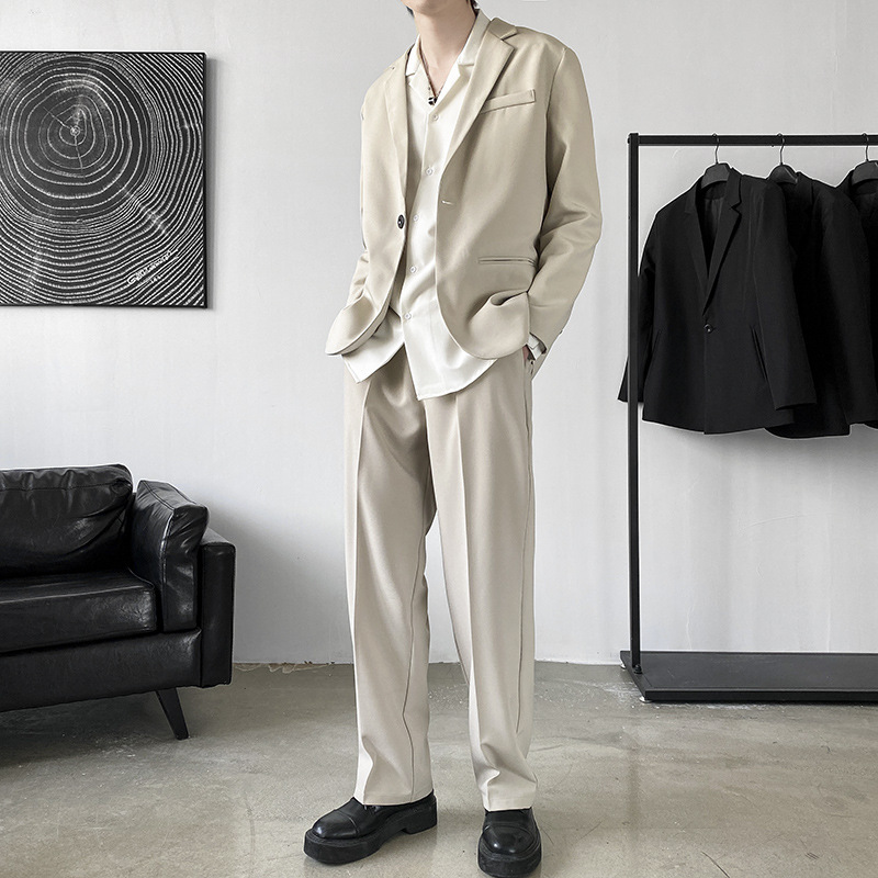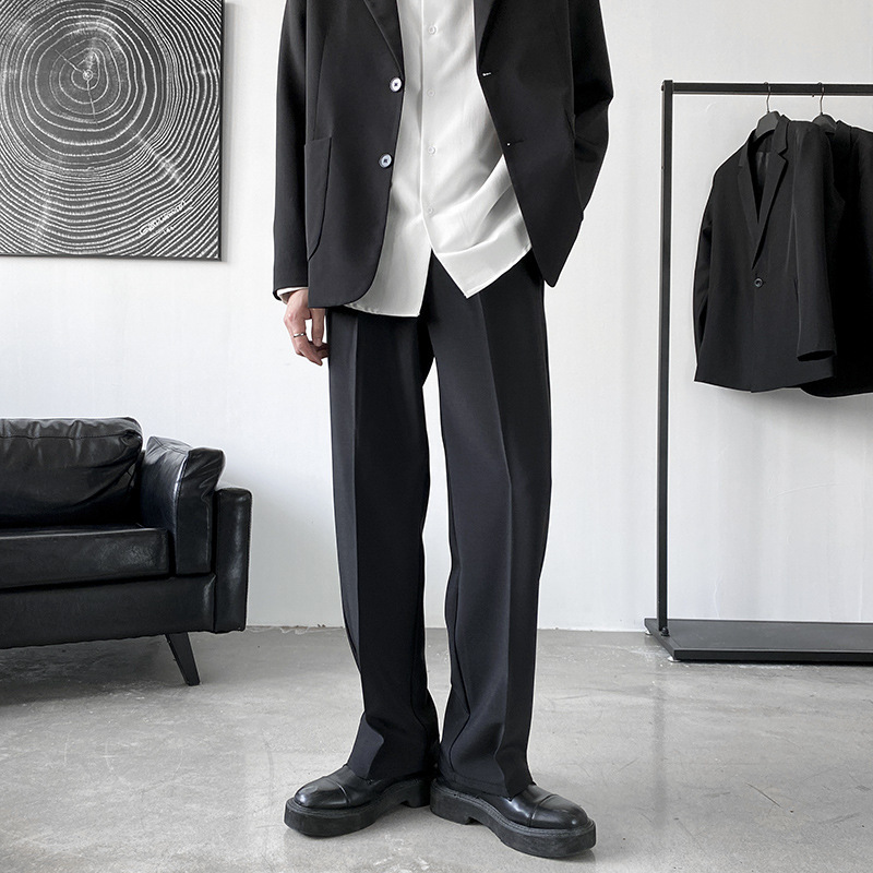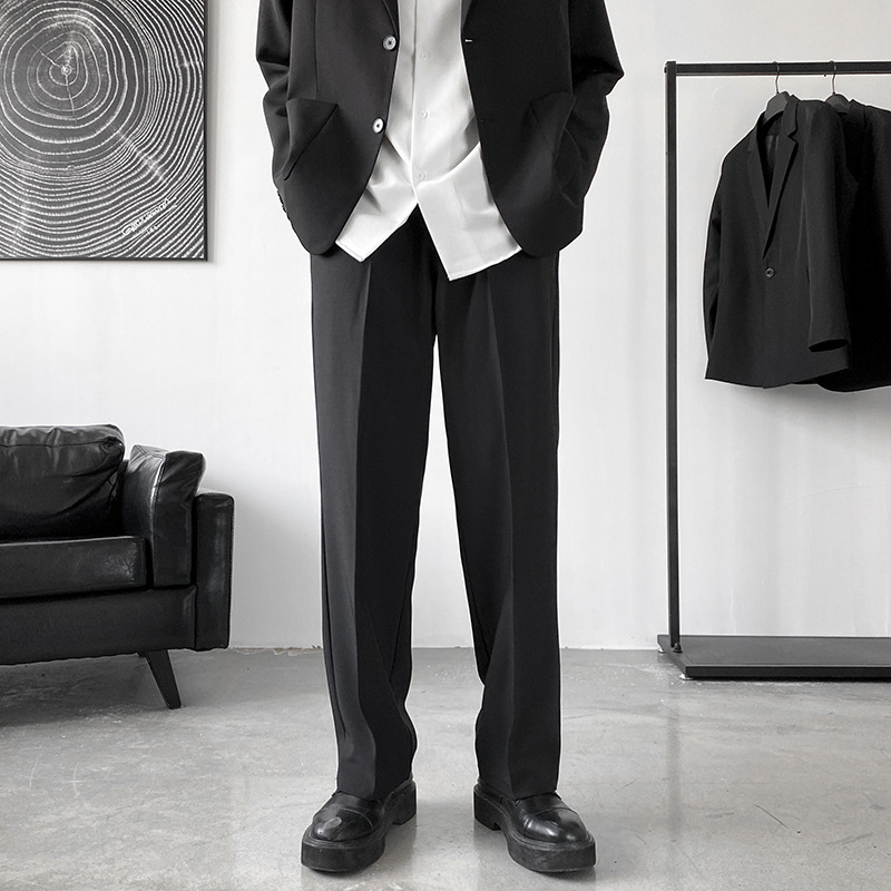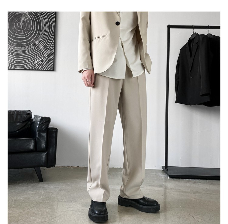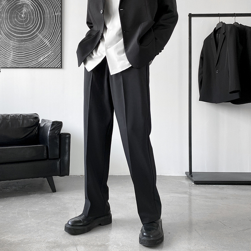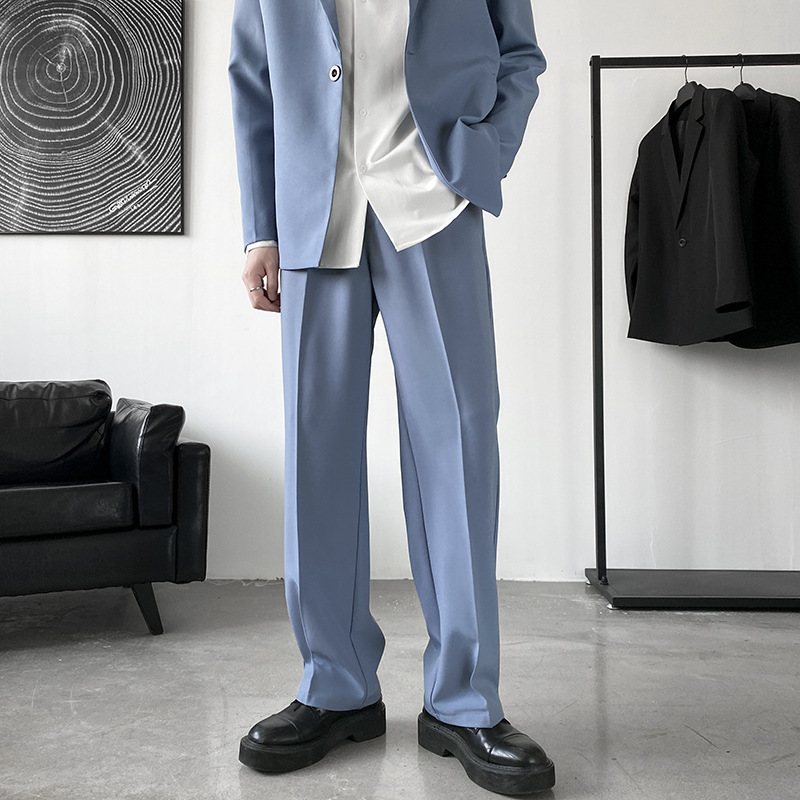 양탄자 허리 작은 서양 바지 남자 루즈 스트레이트 홍콩 스타일 올 매치 한국 스타일 패셔너블 캐주얼 펜던트 와이드 레그 발목 바지