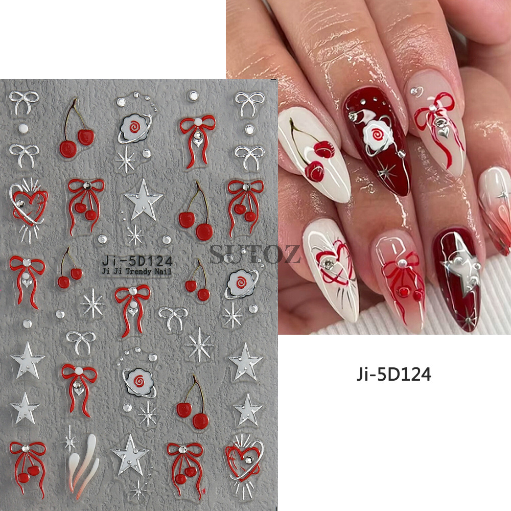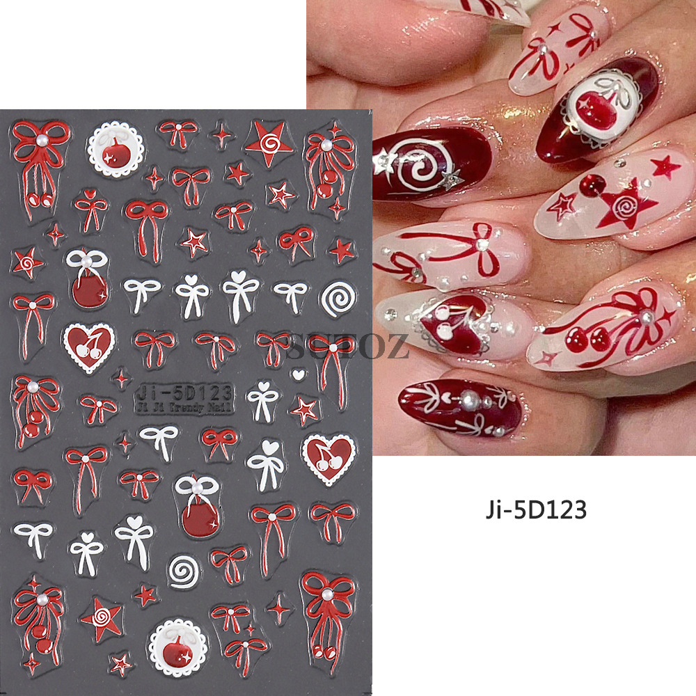 국경 새 네일 아트 스티커 프랑스 크리스탈 다이아몬드 마이크로 조각 붉은 활 체리 스테레오 5D 뒤 접착 스티커스토어 가기