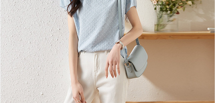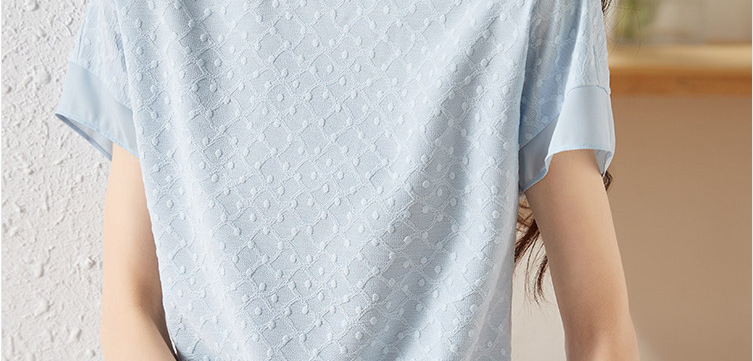 2024 여름 새로운 질감 반팔 쉬폰 셔츠 여자 라운드 넥 캐주얼 올 매치 느슨한 슬리밍 신선한 스타일 탑스토어 가기