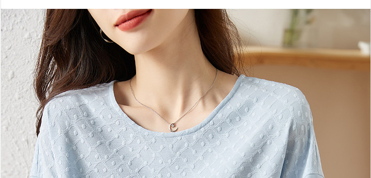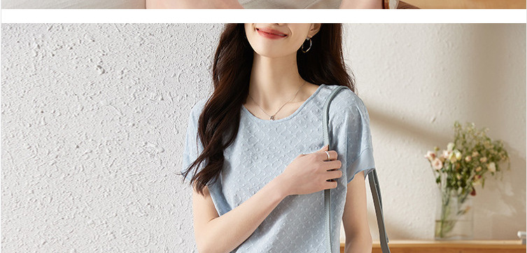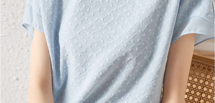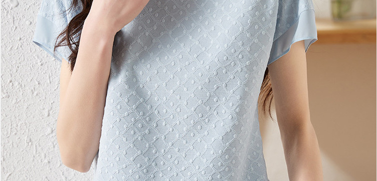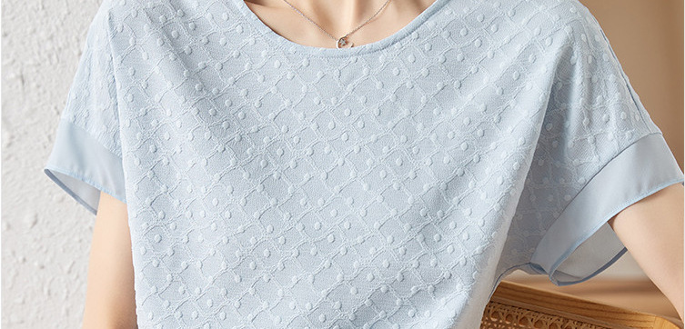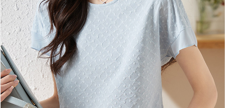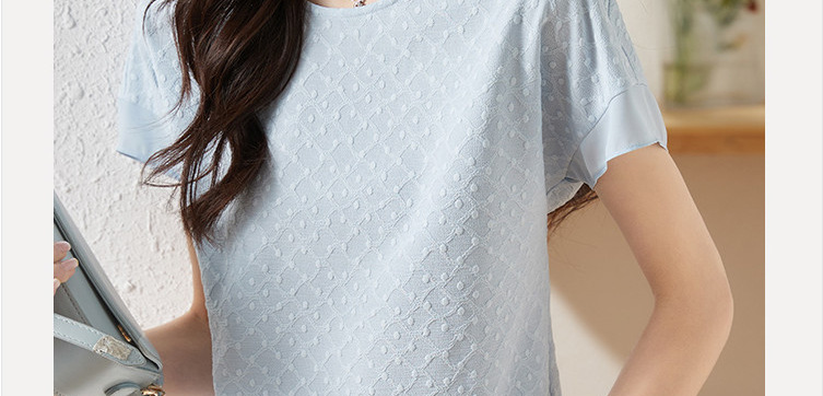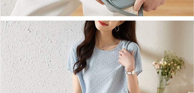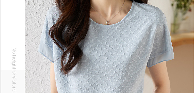 2024 여름 새로운 질감 반팔 쉬폰 셔츠 여자 라운드 넥 캐주얼 올 매치 느슨한 슬리밍 신선한 스타일 탑
