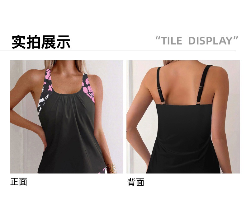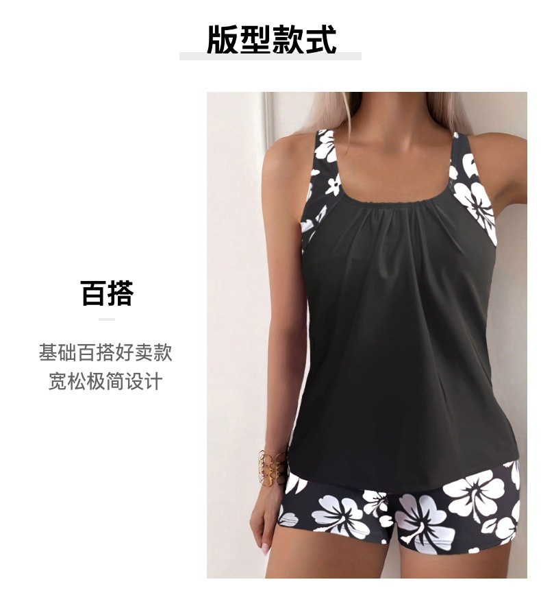 2024 유럽과 미국의 새로운 블랙 스플릿 수영복 여성의 섹시한 슬림 핏 인쇄 복서 국경 간 무역 Tankini스토어 가기