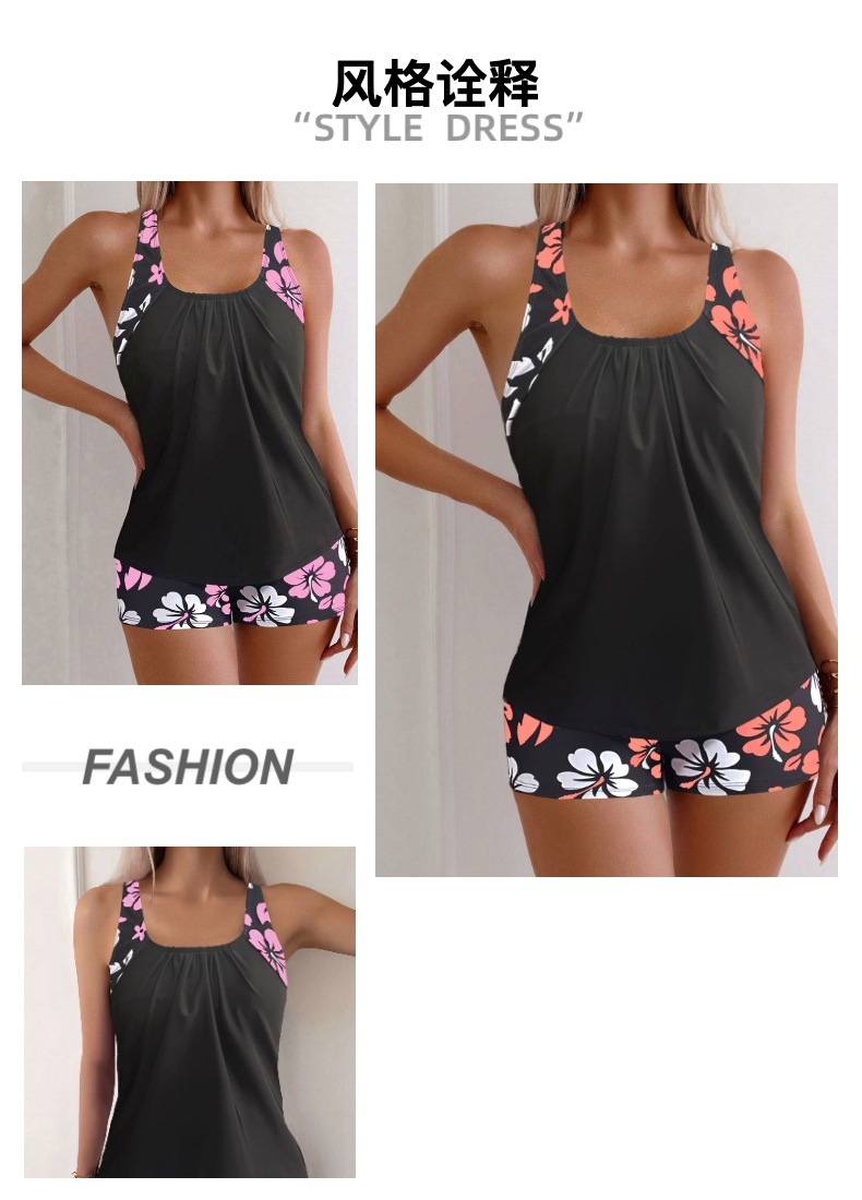2024 유럽과 미국의 새로운 블랙 스플릿 수영복 여성의 섹시한 슬림 핏 인쇄 복서 국경 간 무역 Tankini