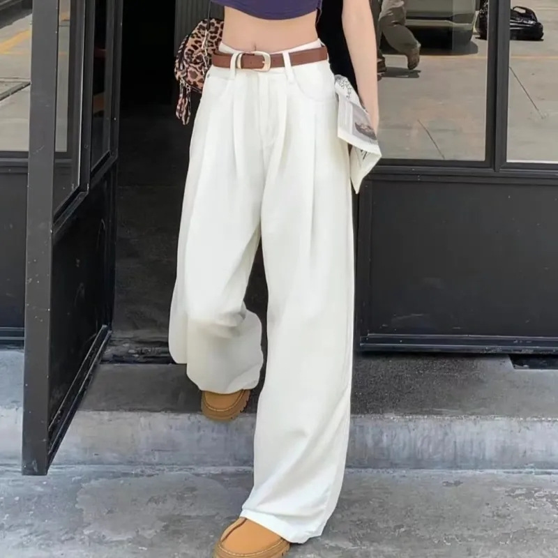 흰색 느슨한 슬림 넓은 다리 바지 청바지 여성의 가을 2024 높은 허리 Daggy 스트레이트 Lasting 유행 바지스토어 가기