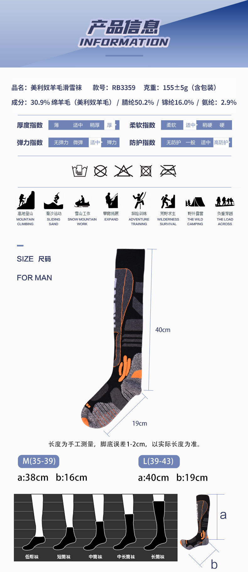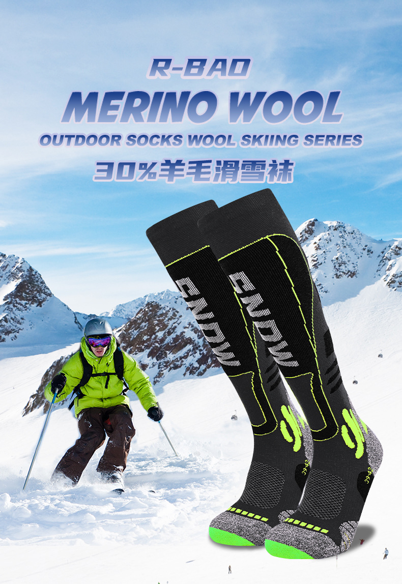 긴 배럴 메리노 울 스키 양말 전문 남녀 야외 하이킹 두꺼운 테리 따뜻한 등반 양말