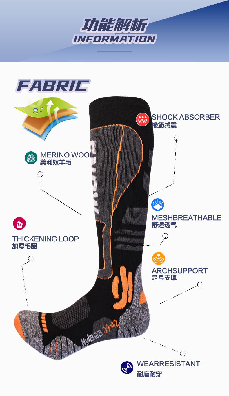 긴 배럴 메리노 울 스키 양말 전문 남녀 야외 하이킹 두꺼운 테리 따뜻한 등반 양말스토어 가기